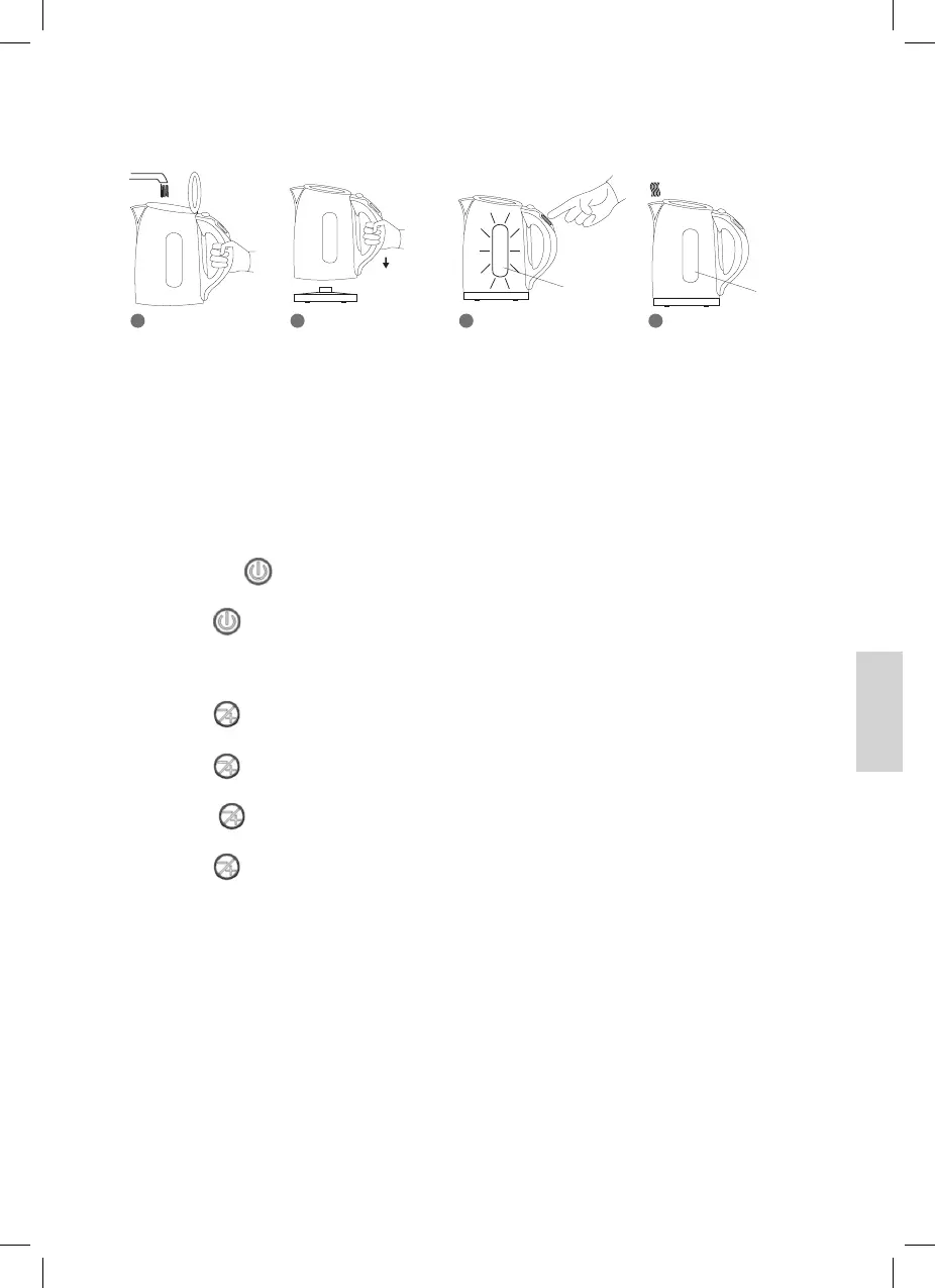 • Press the “ ” key shortly,the kettle will start. After the water boils the kettle