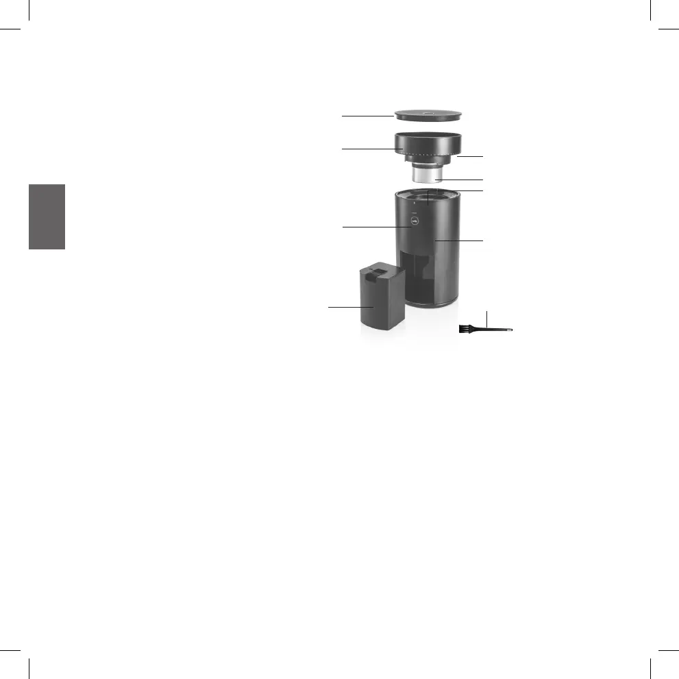 Kaffekvarnens behållare ➏ har en maximal kapacitet på 75 g.