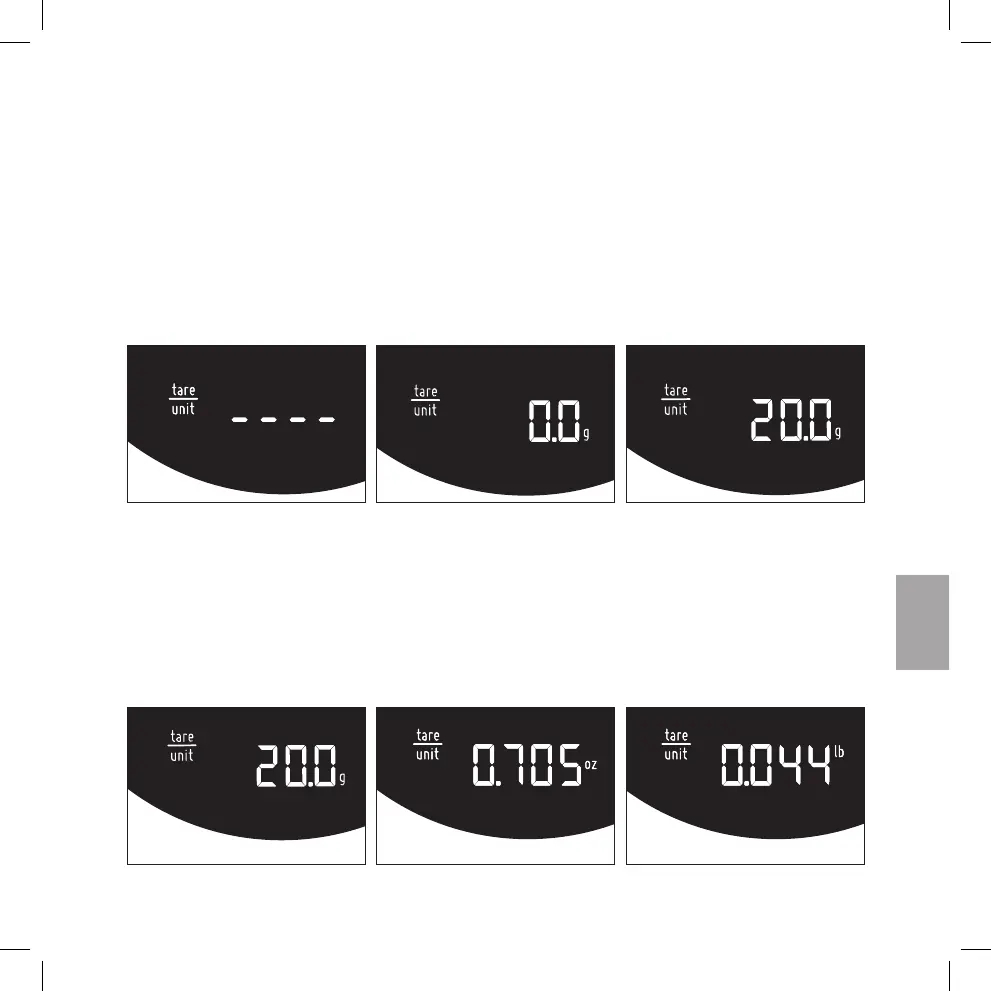 • Press and hold “tare/unit” button for 1 second, the digits disappear and then the unit