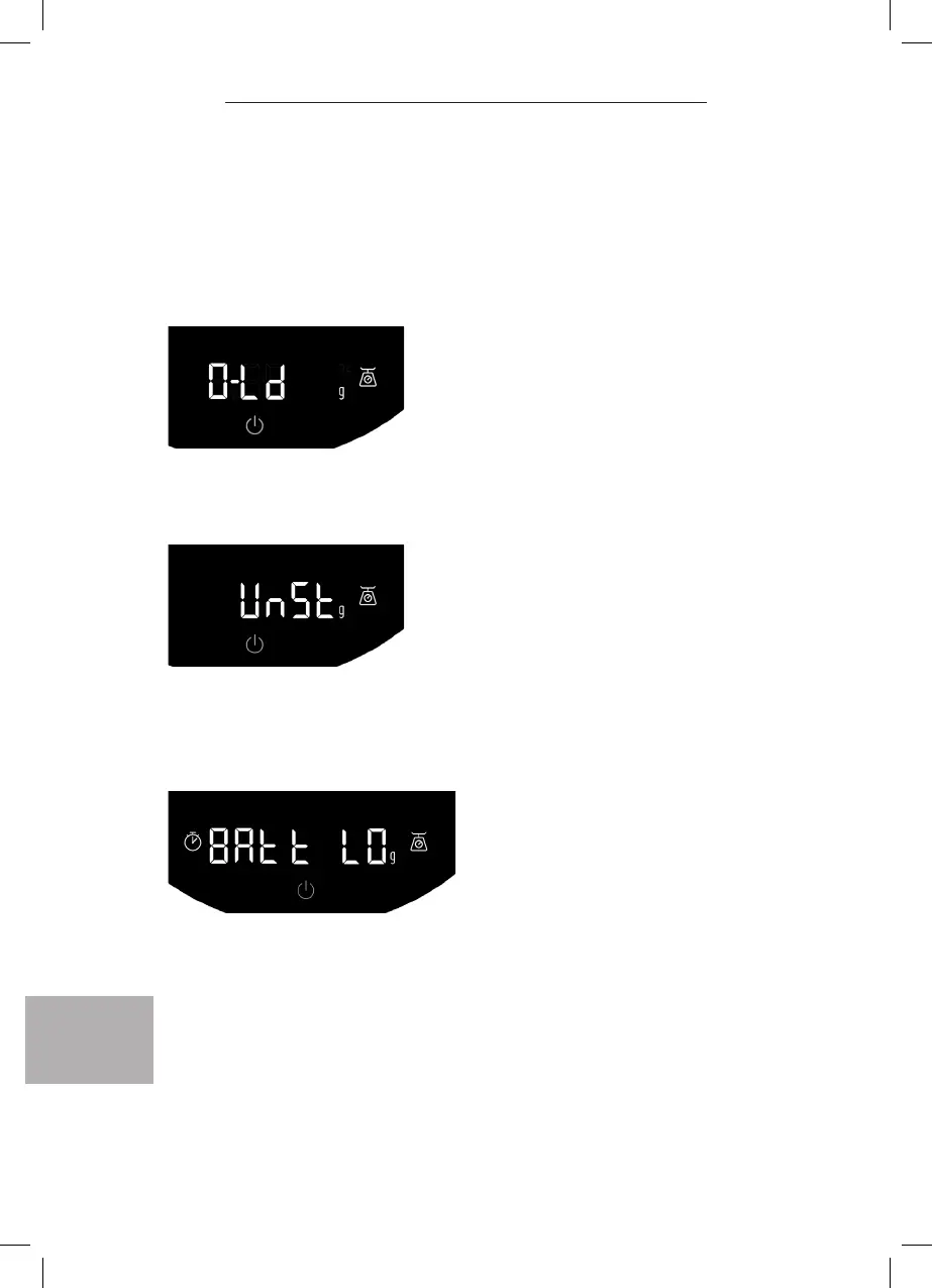 La báscula está sobrecargada. Retire peso de la báscula (peso máximo: 2000 g).