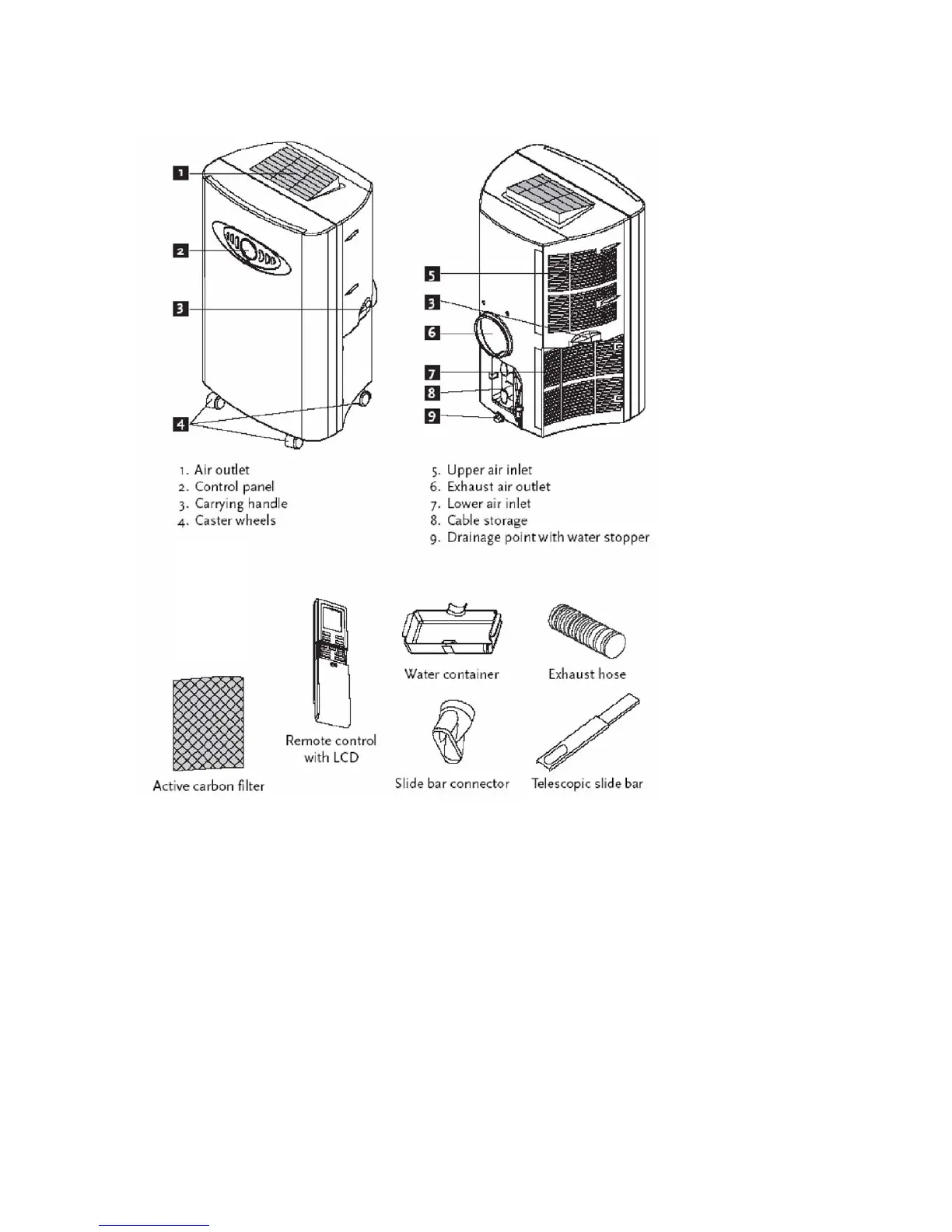 Wilfa WAC-9000 - Wilfa Air Conditioner Overview; Unit Components Identification; Included Accessories