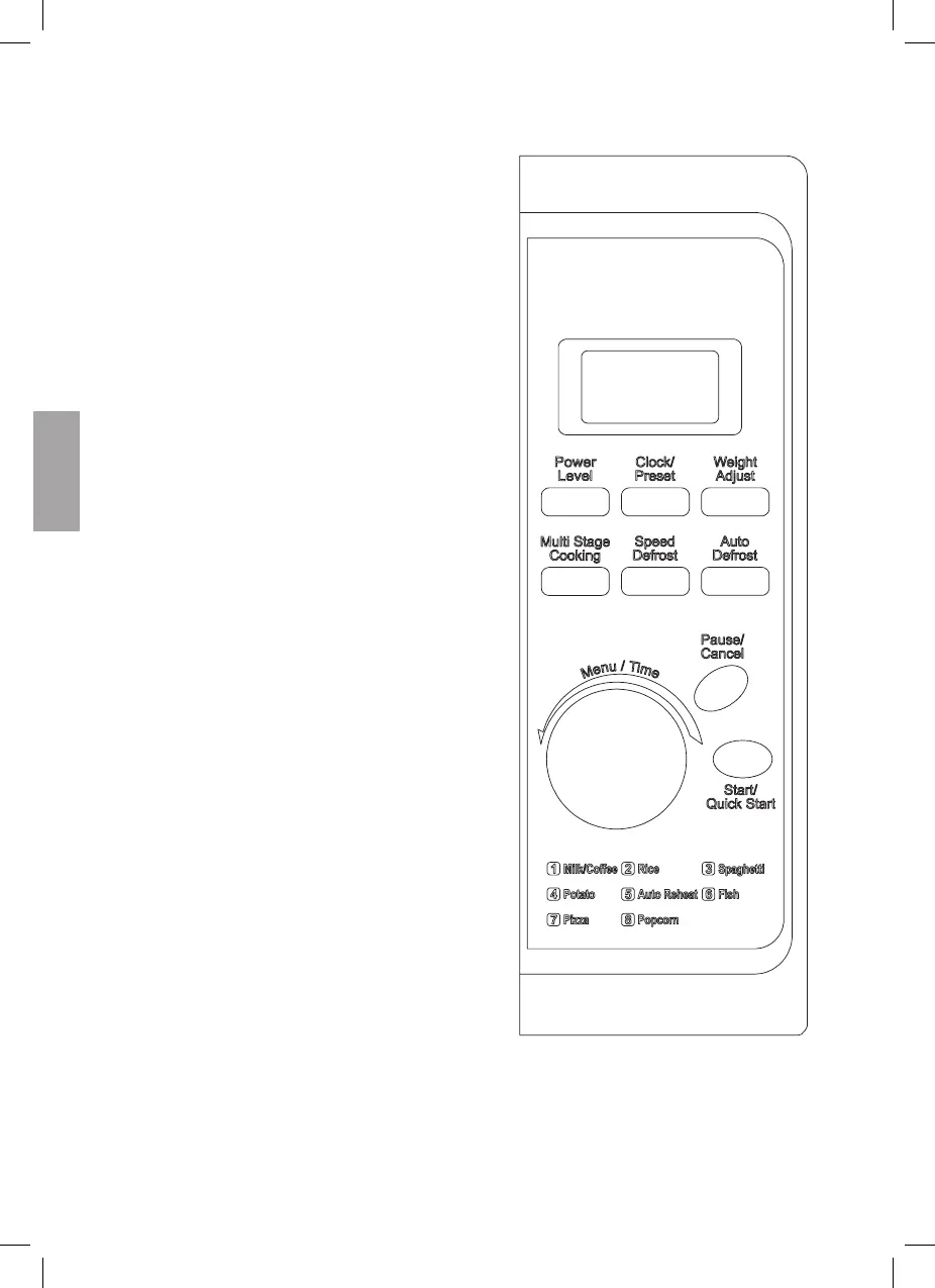 Viser tilberedningstid, effekt, funktion og ur.