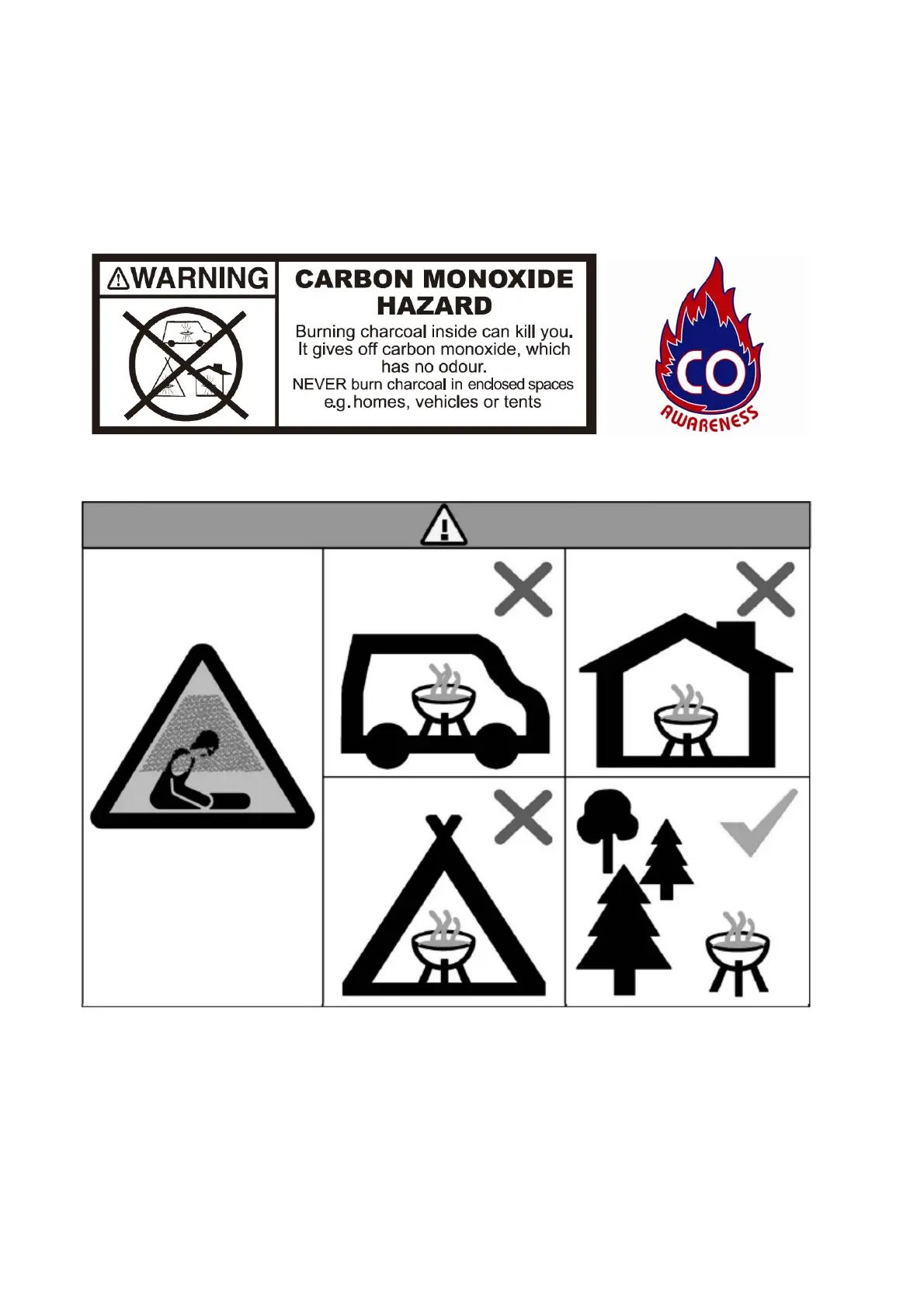 ot use the barbecue in a confined and/or habitable space e.g. houses, tent, caravans, motor homes, boat