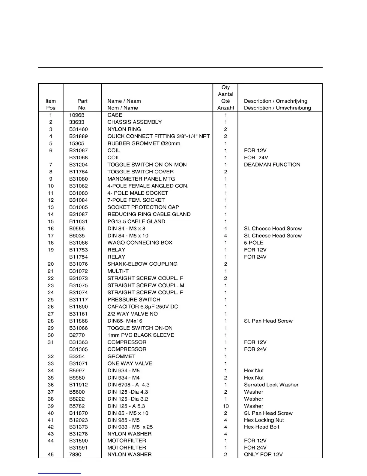 Will Burt 40 - SPARE PARTS LIST