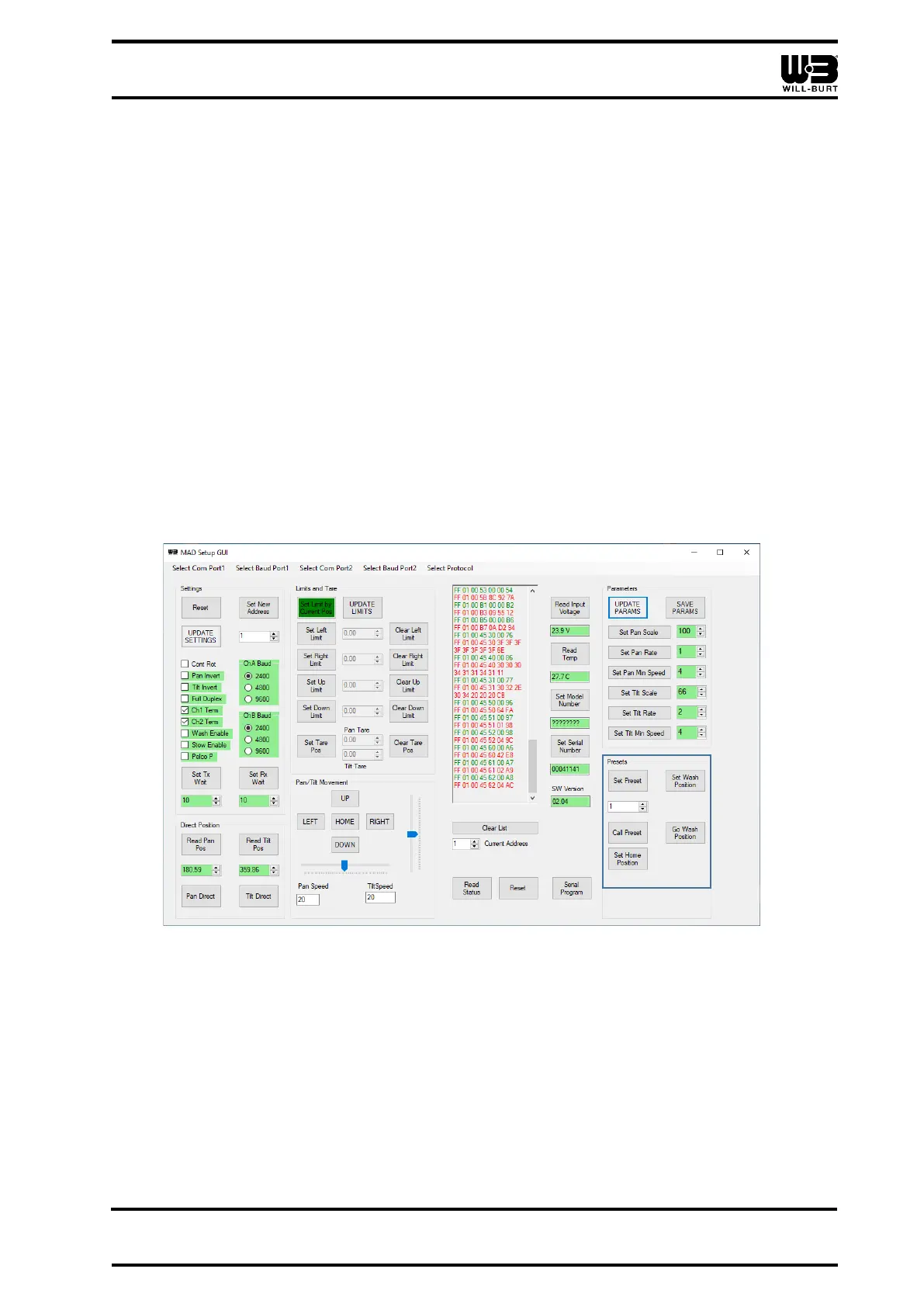 • To drive the unit using the GUI the Baud Rate from the dropdown menu “Select Baud