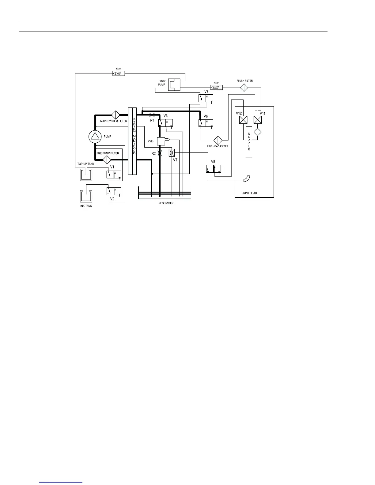 If the ink is too thick (i.e. the time to drain is longer than the calculated value) solenoid valve V1 opens. The