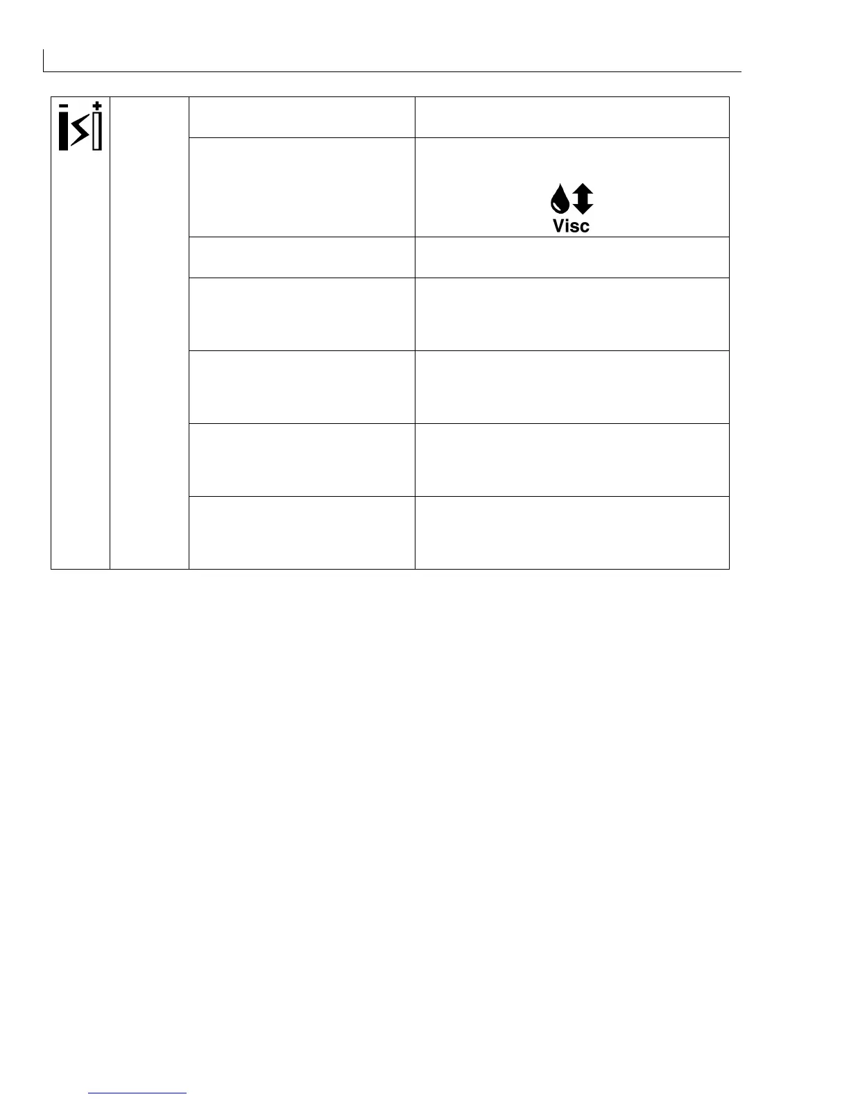 Viscosity incorrect Refer to the viscosity error icon in this table for