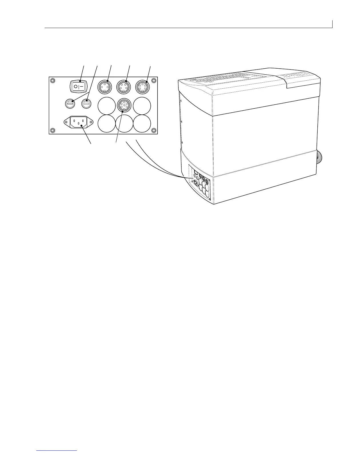 The connector panel is a stainless steel pre-drilled plate fitted to the printer base and secured by four screws.