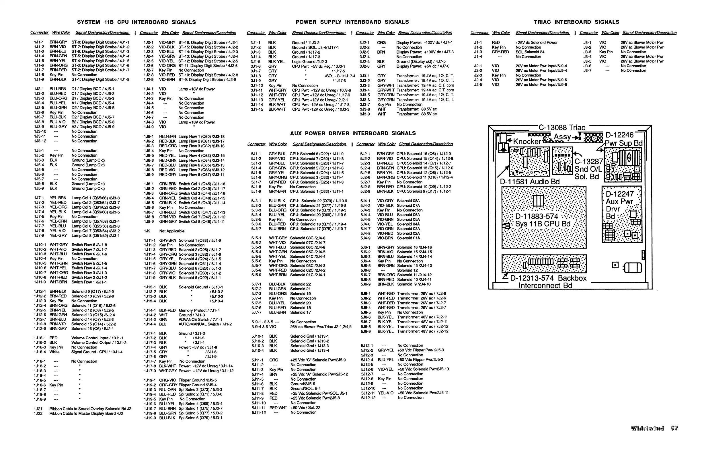 Williams Electronics WHIRLWIND - Game Circuit Boards Interboards Signals; System 11 B CPU; Power Supply; Aux Power Driver