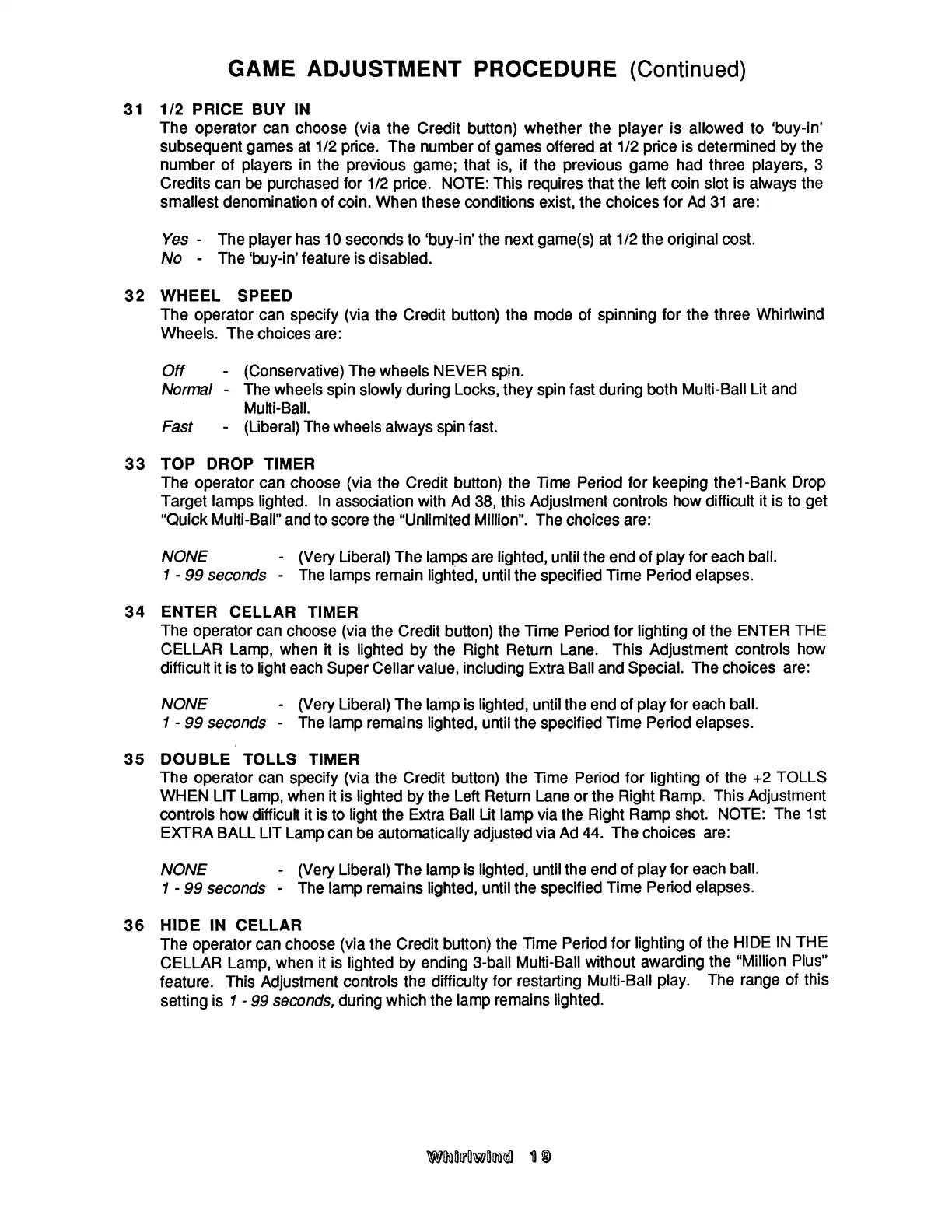 Williams Electronics WHIRLWIND - Item 31 - 36