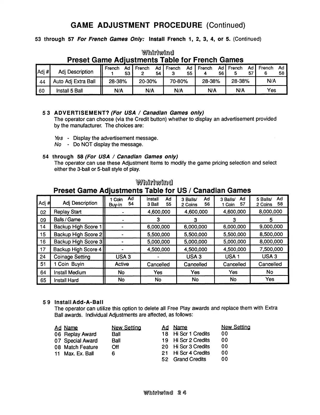Williams Electronics WHIRLWIND - French Games; US; Canadian Games