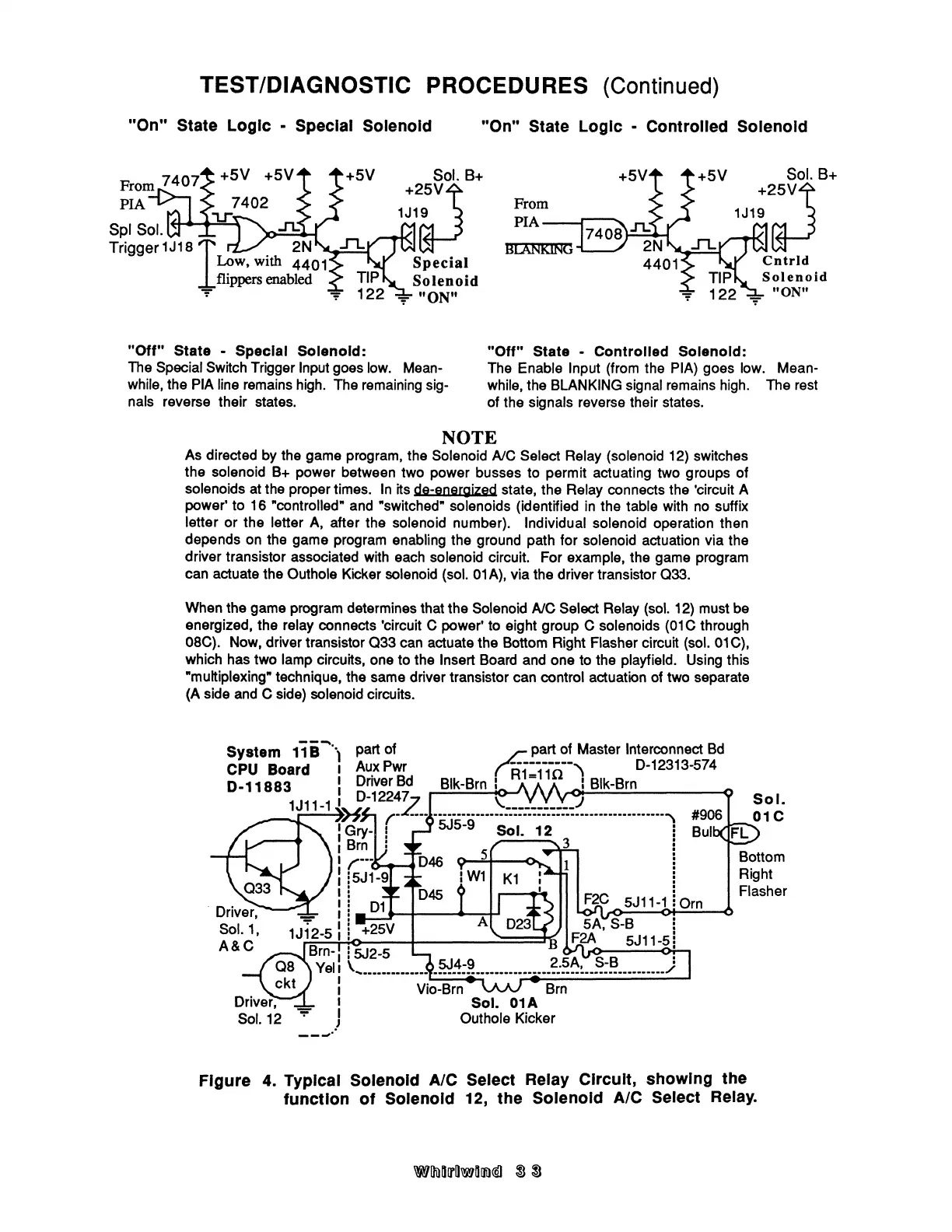 Williams Electronics WHIRLWIND - Special and Controlled Solenoids; Figure 4. Typical Solenoid A;C Select Relay Circuit