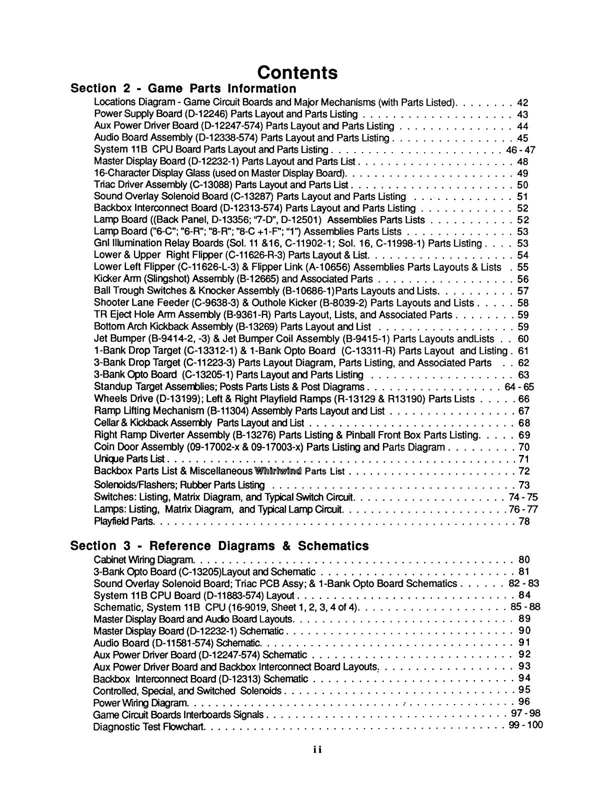 Williams Electronics WHIRLWIND - Contents - Section 2 + 3