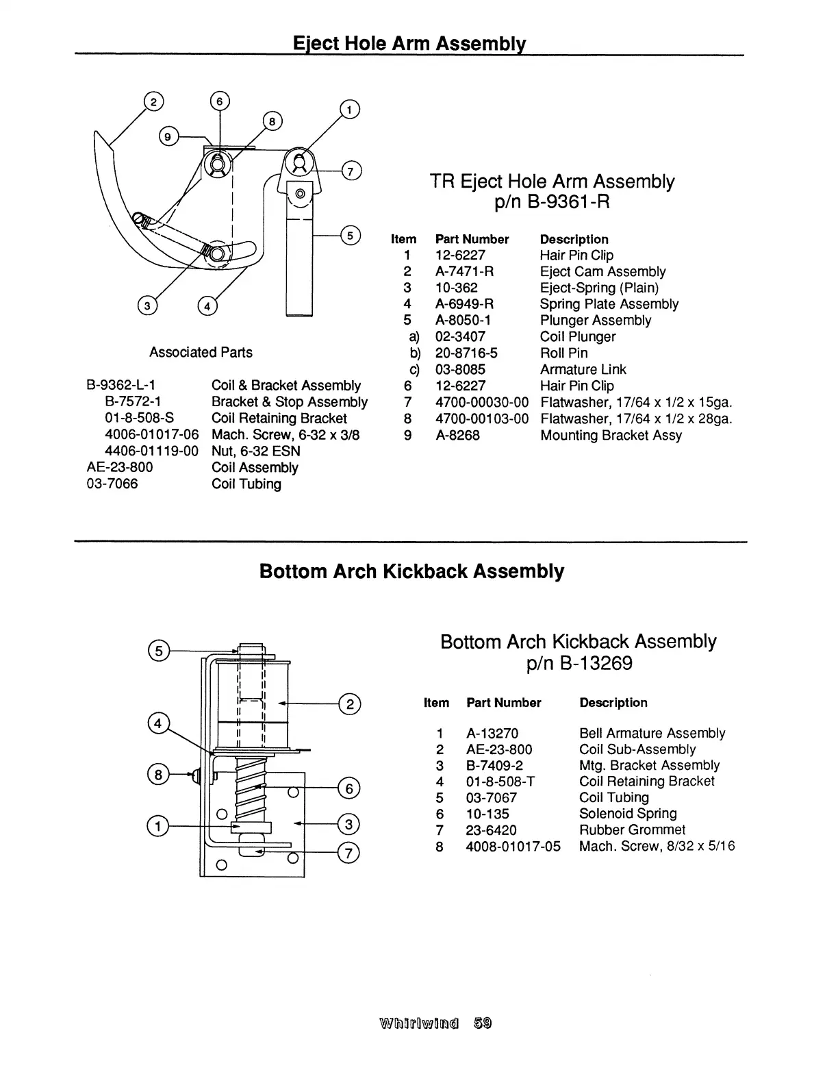 Williams Electronics WHIRLWIND - Eject Hole Arm Assembly; Bottom Arch Kickback Assembly