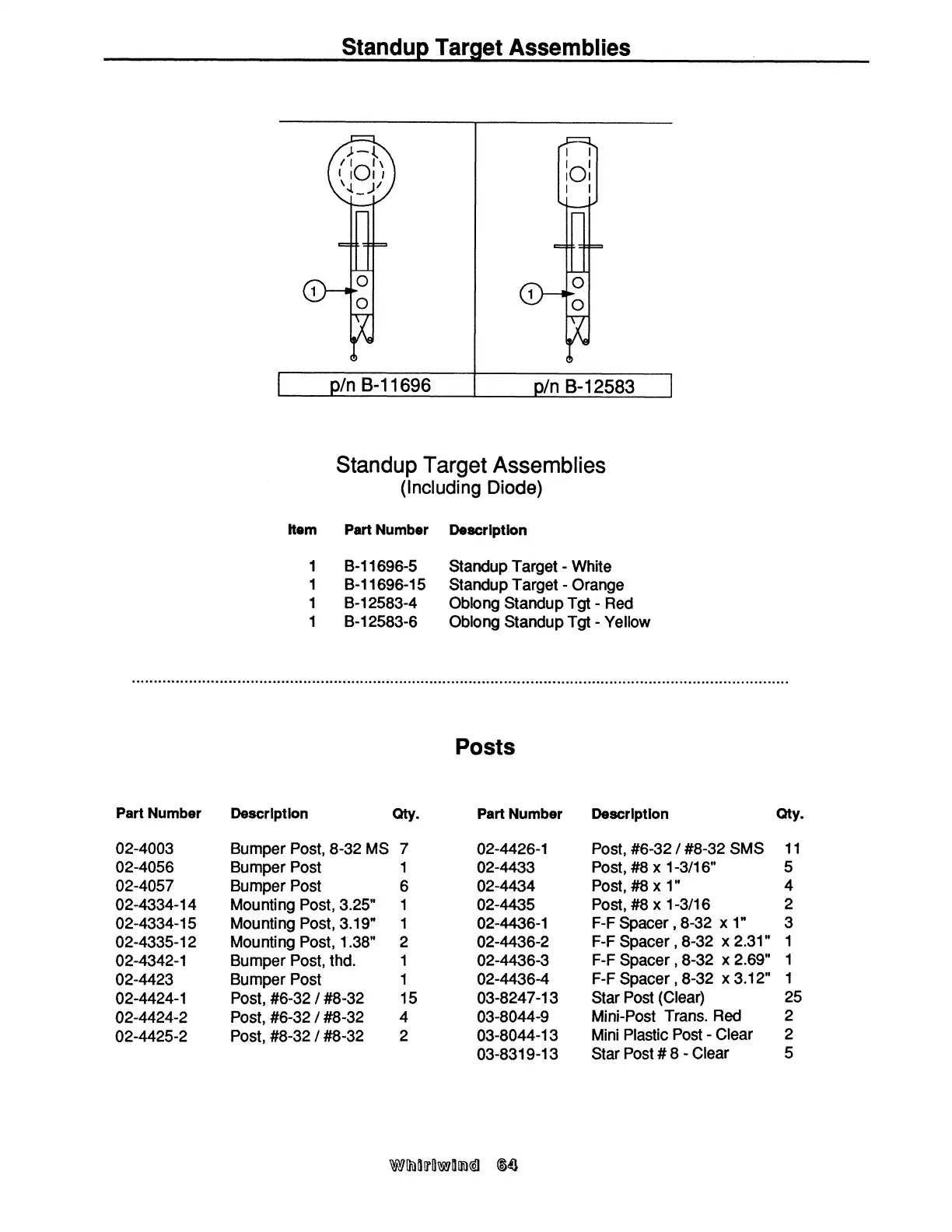 Williams Electronics WHIRLWIND - Standup Target Assemblies; Posts List