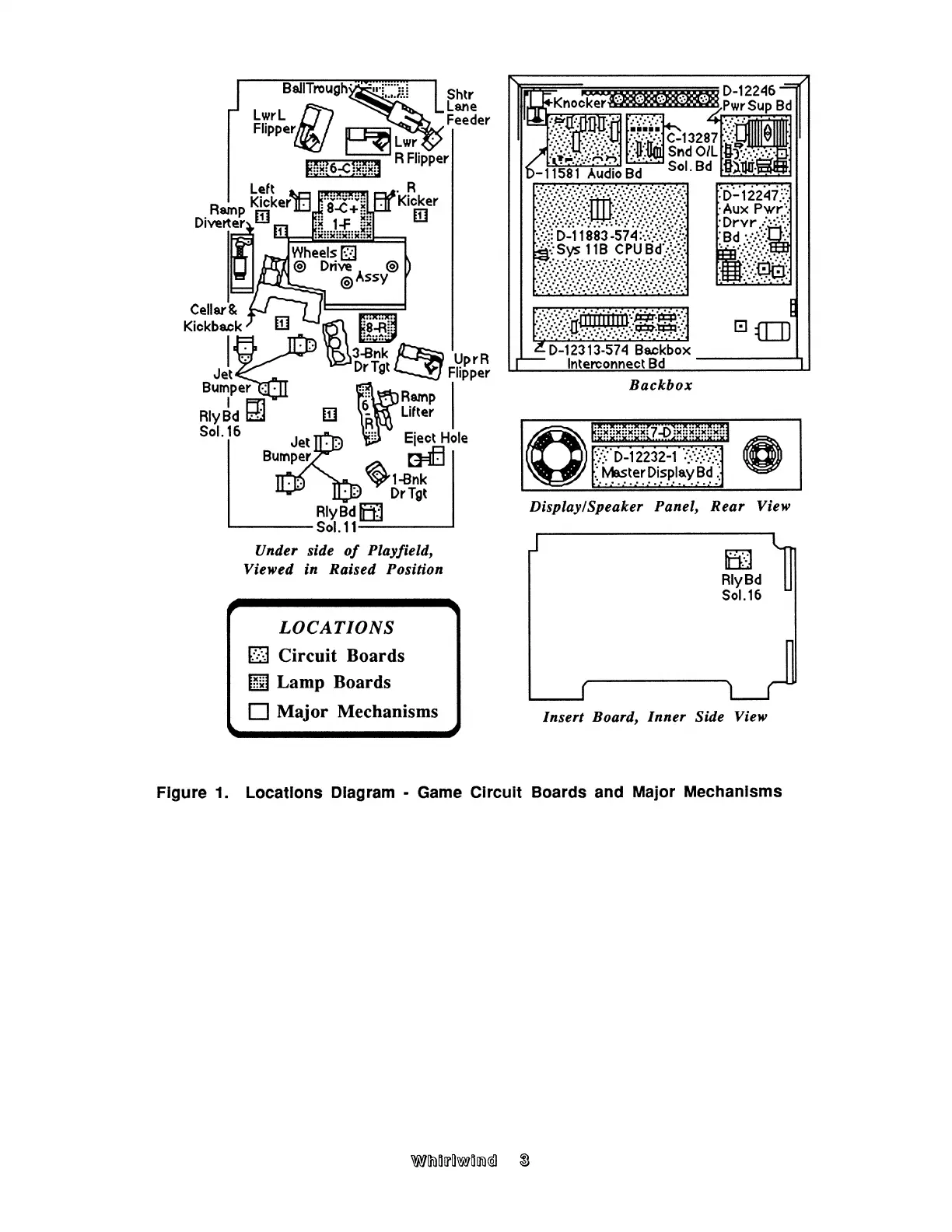 Williams Electronics WHIRLWIND - Figure 1. Locations Diagram - Game Circuit Boards and Major Mechanisms