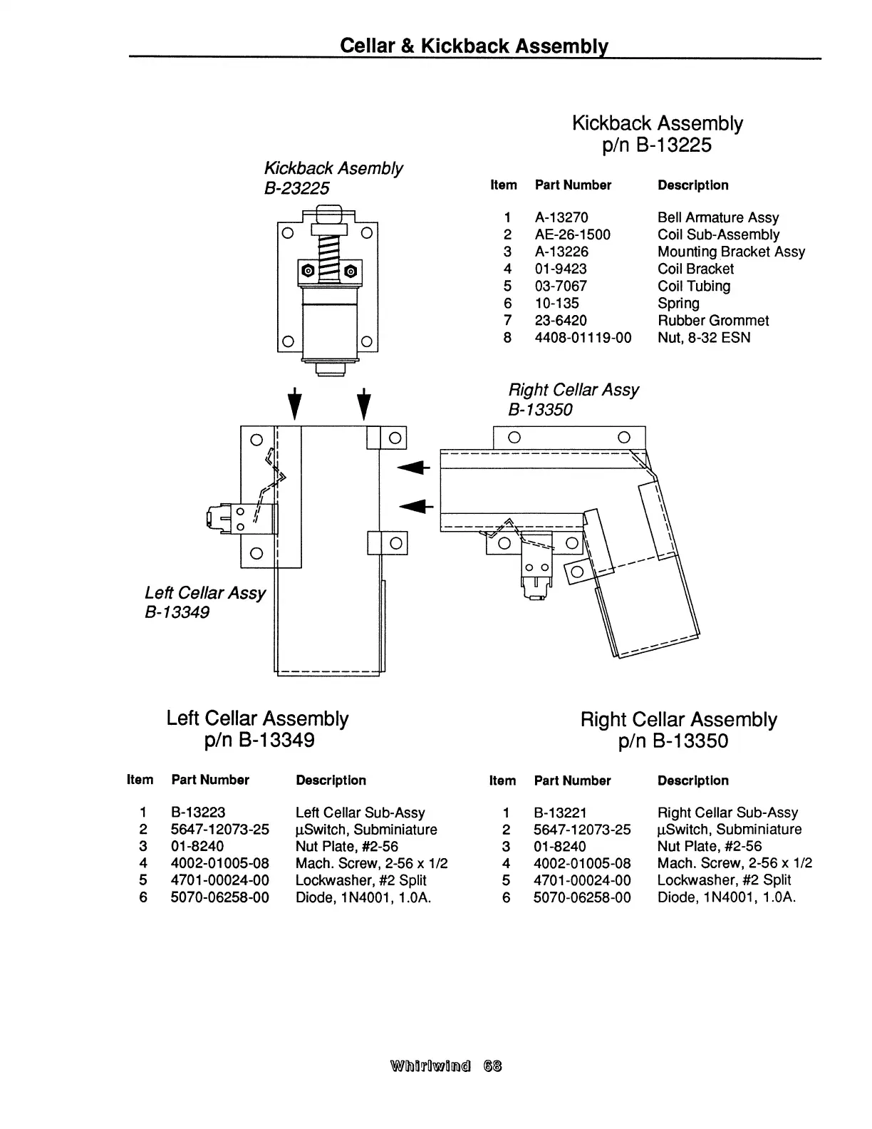 Williams Electronics WHIRLWIND - Cellar & Kickback Assembly