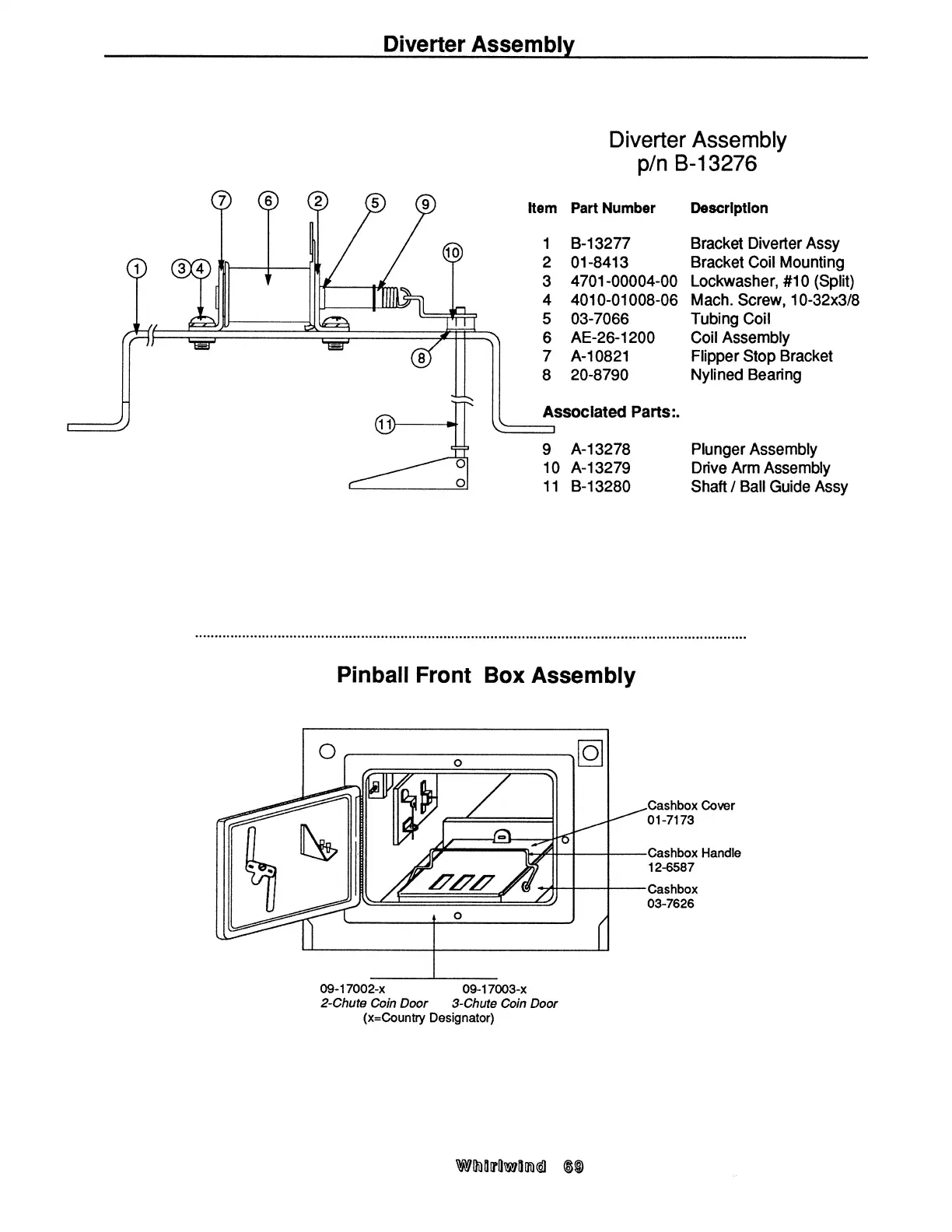 Williams Electronics WHIRLWIND - Diverter Assembly; Pinball Front Box Assembly