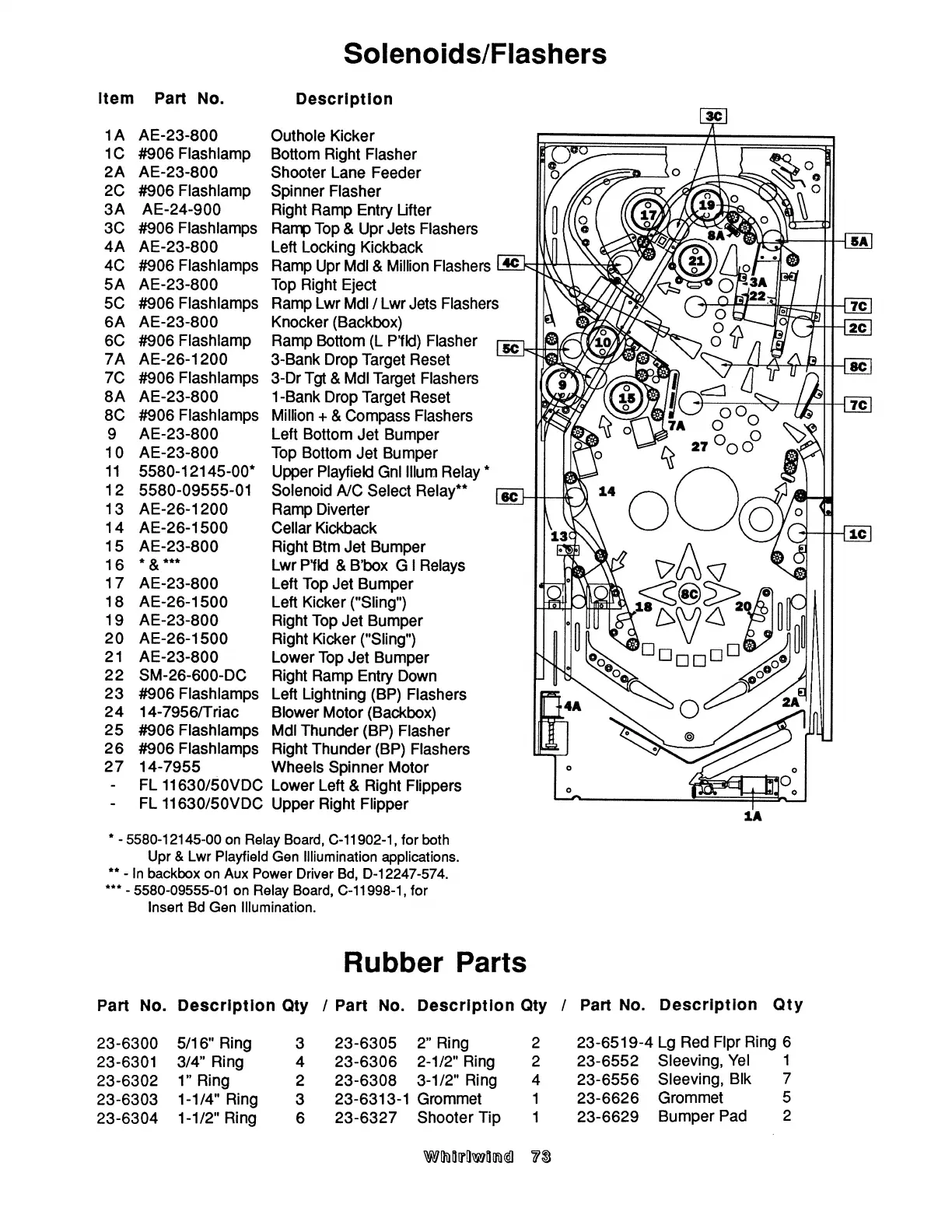 Williams Electronics WHIRLWIND - Solenoids; Flashers; Rubber Parts