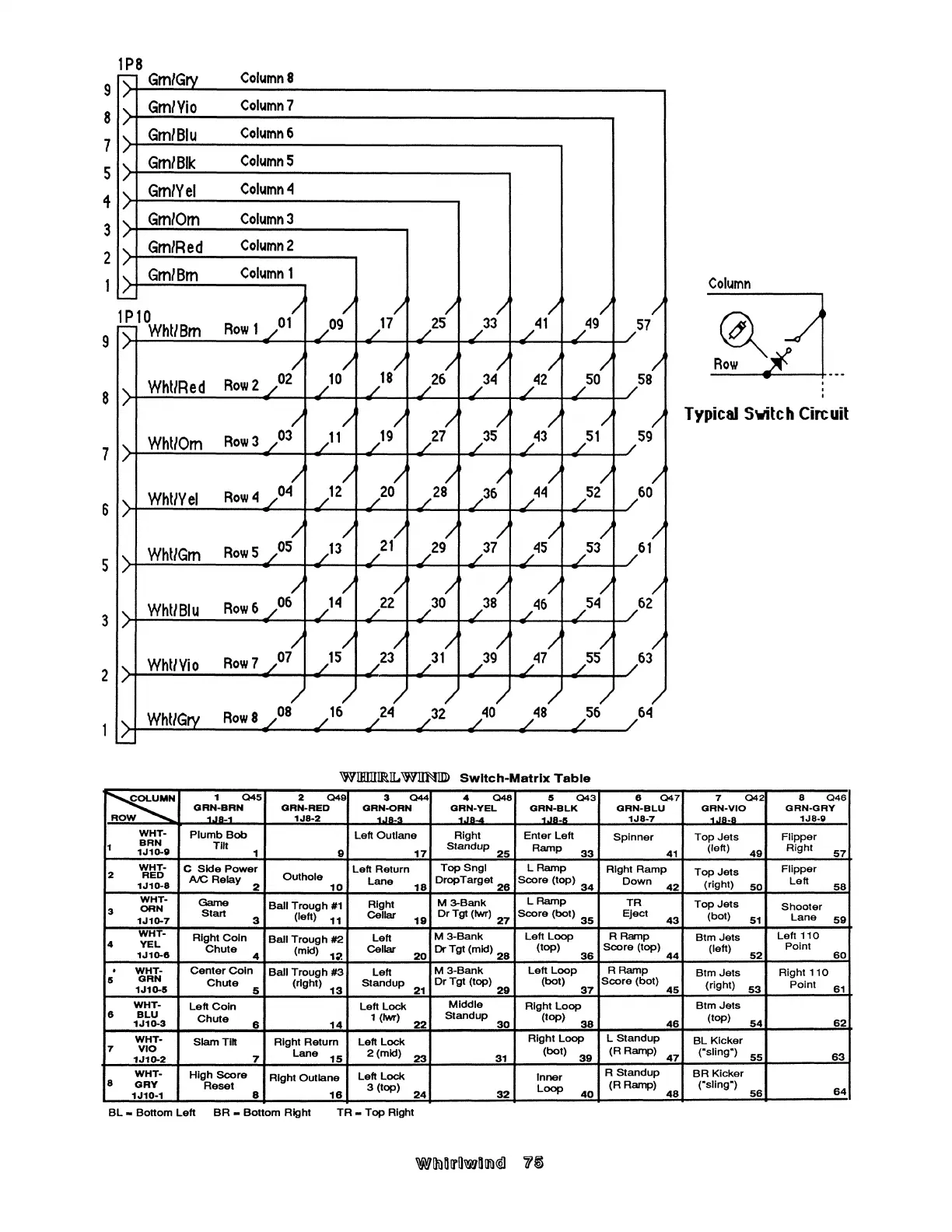 Williams Electronics WHIRLWIND - Matrix Diagram; Typical Switch Circuit; Switch-Matrix Table