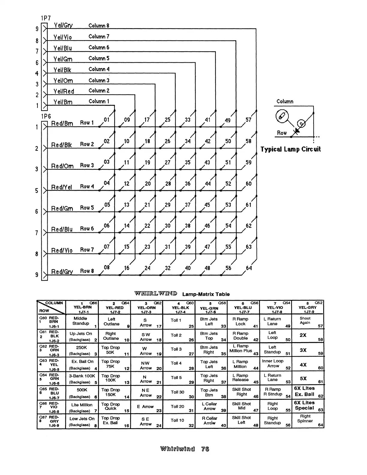 Williams Electronics WHIRLWIND - Lamps; Matrix Diagram; Typical Lamp Circuit; Lamp-Matrix Table