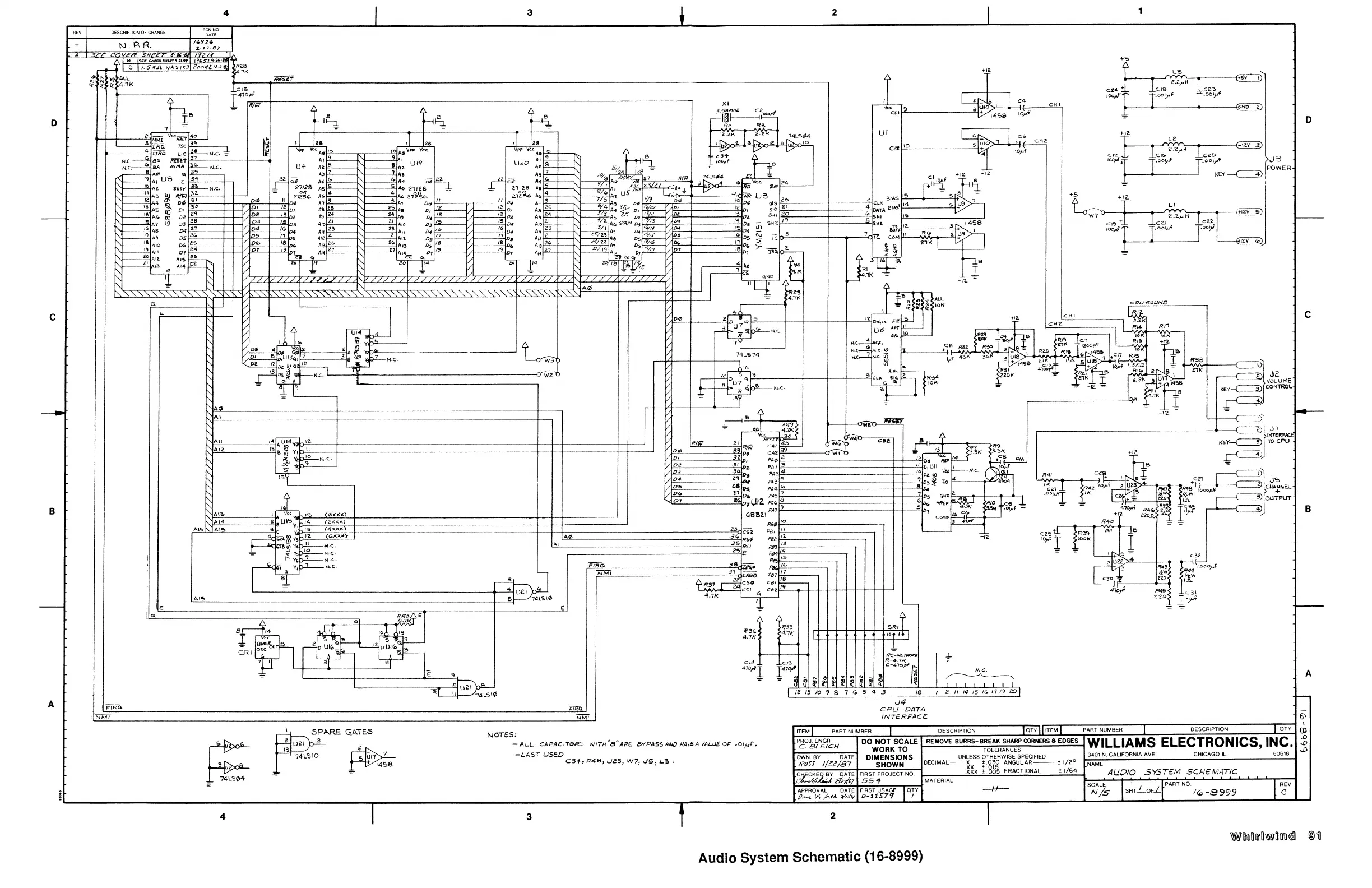 Williams Electronics WHIRLWIND - Audio System Schematic