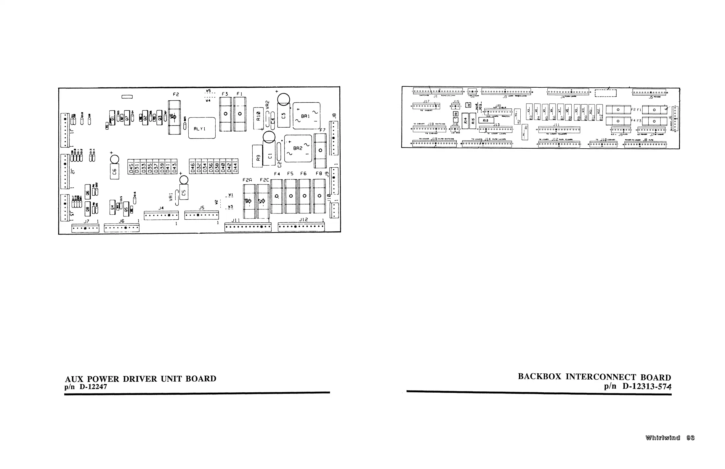 Williams Electronics WHIRLWIND - Aux Power Driver Unit Board; Backbox Interconnect Board; Layout
