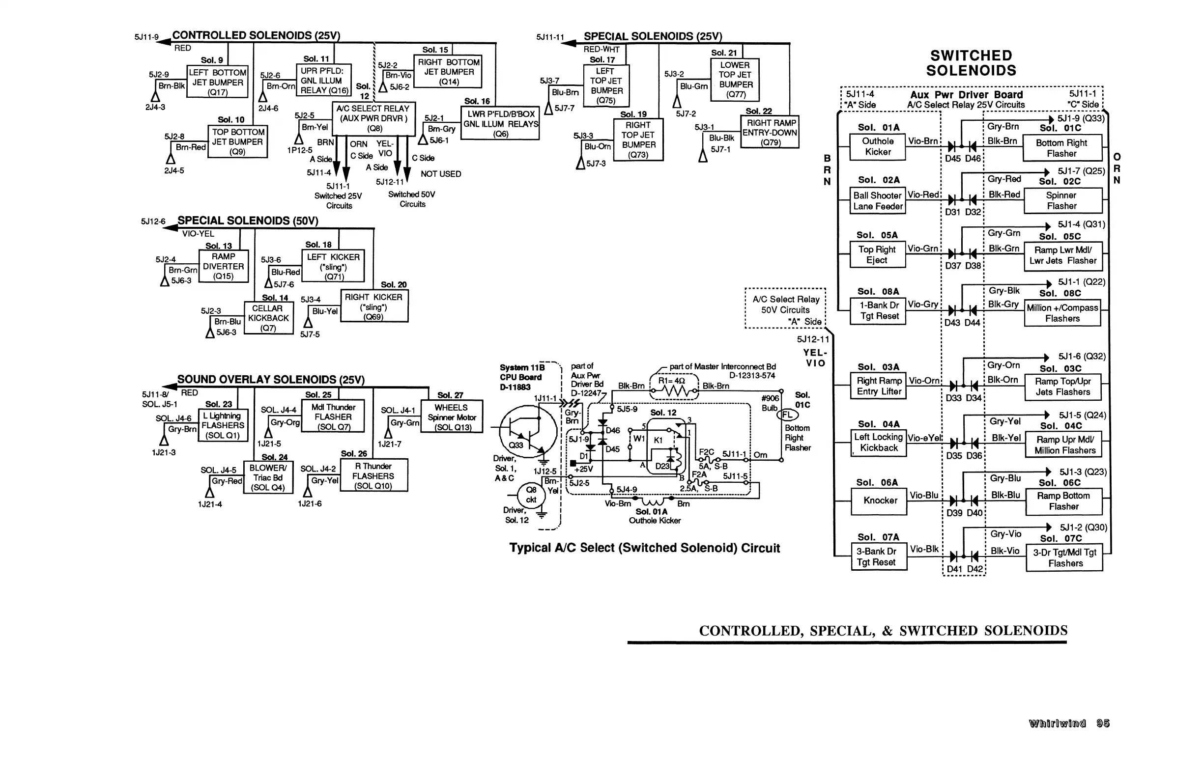 Williams Electronics WHIRLWIND - Controlled, Special & Switched Solenoids