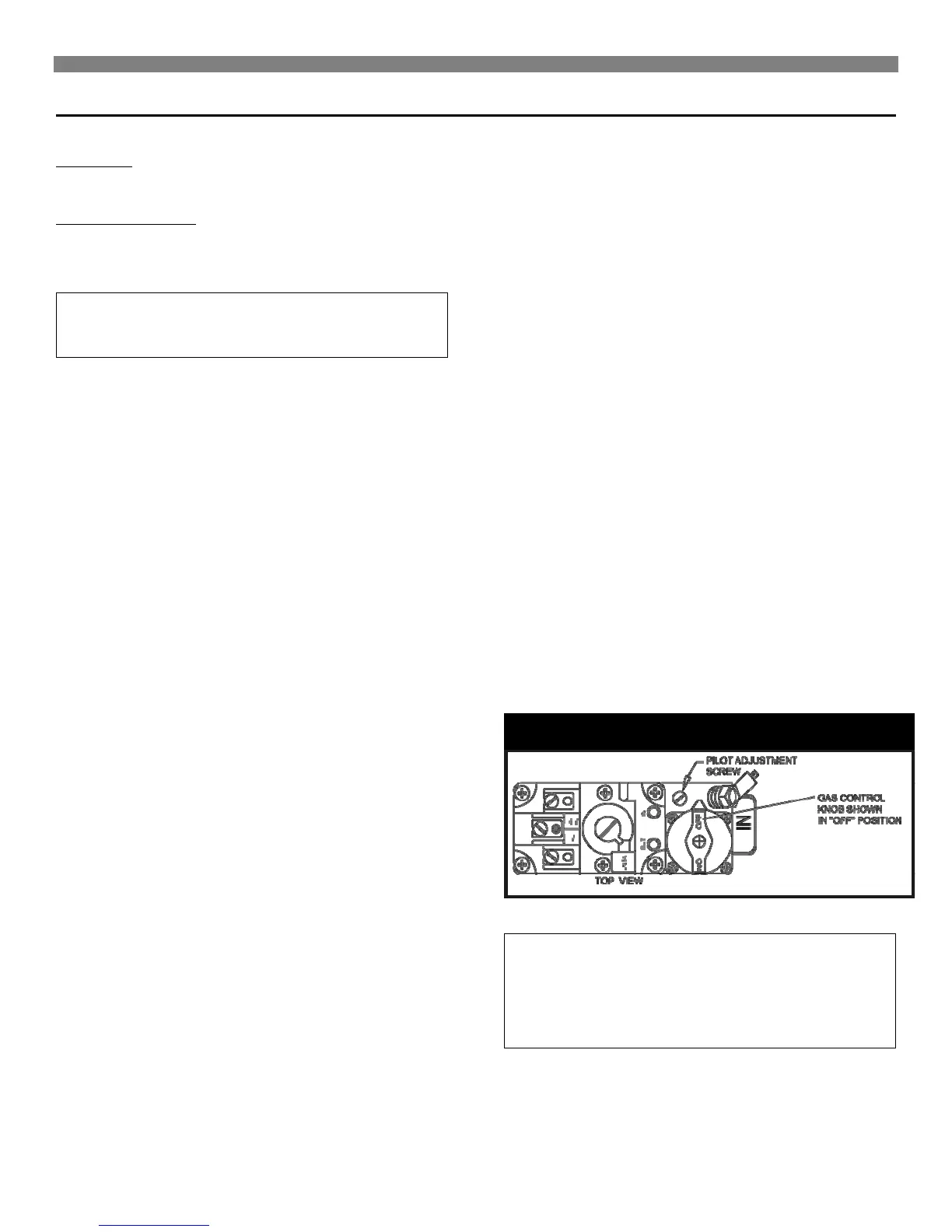 Light the pilot using instructions in "Lighting the Pilot". Leave