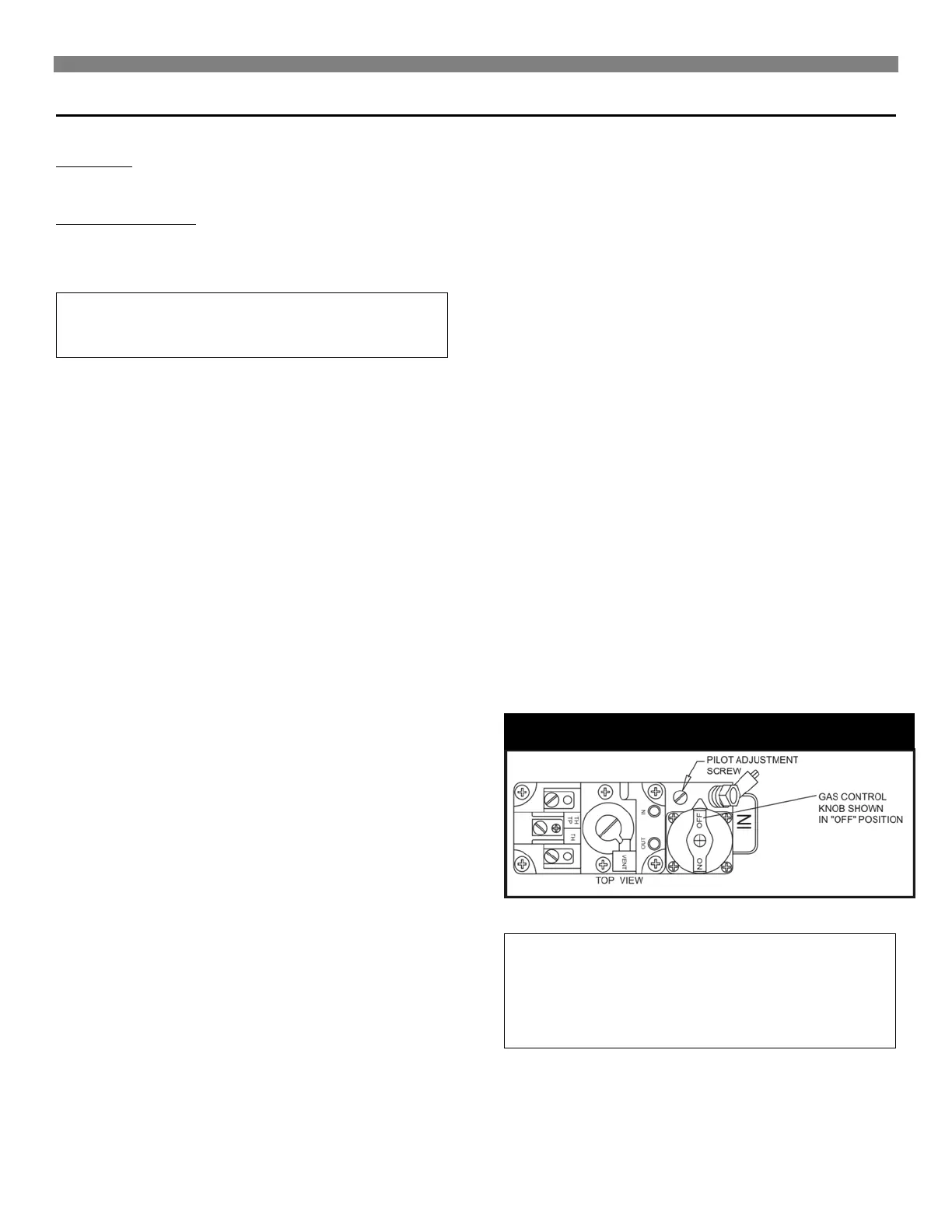 Light the pilot using instructions in "Lighting the Pilot". Leave