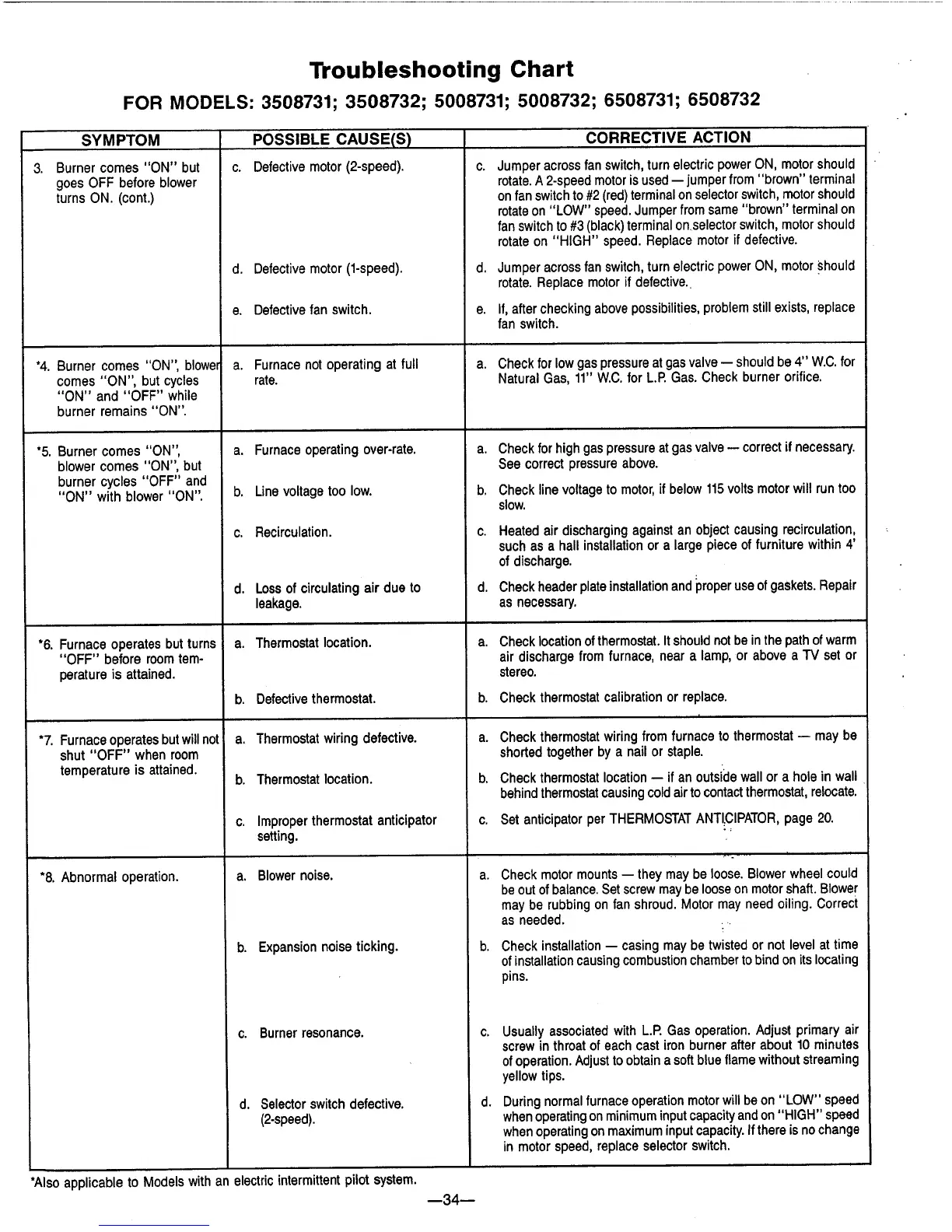 Williams 3508732 - Troubleshooting Chart