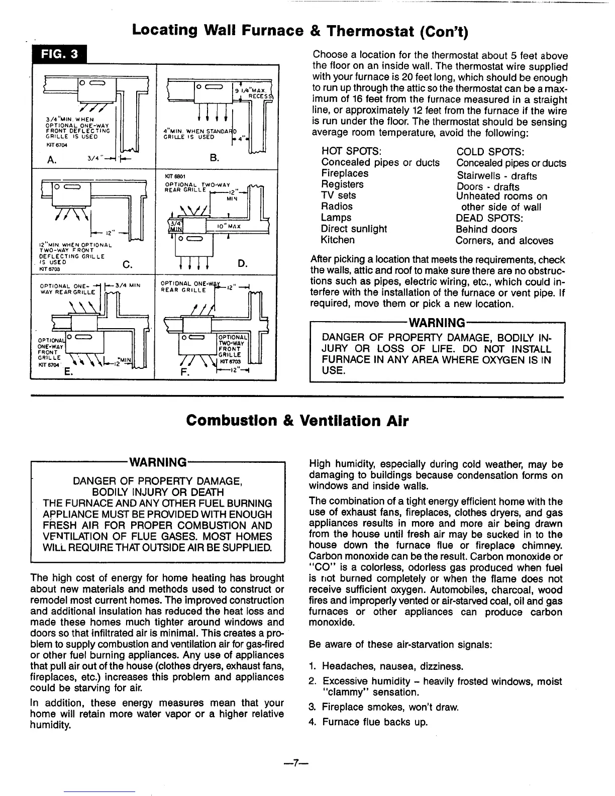 Williams 3508732 - Installing Your Wall Furnace; Locating Wall Furnace & Thermostat