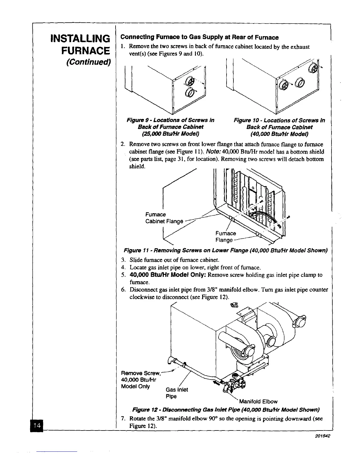 cabinet flange (see Figure 11). Note: 40,000 Btu/Hr model has a bottom shield