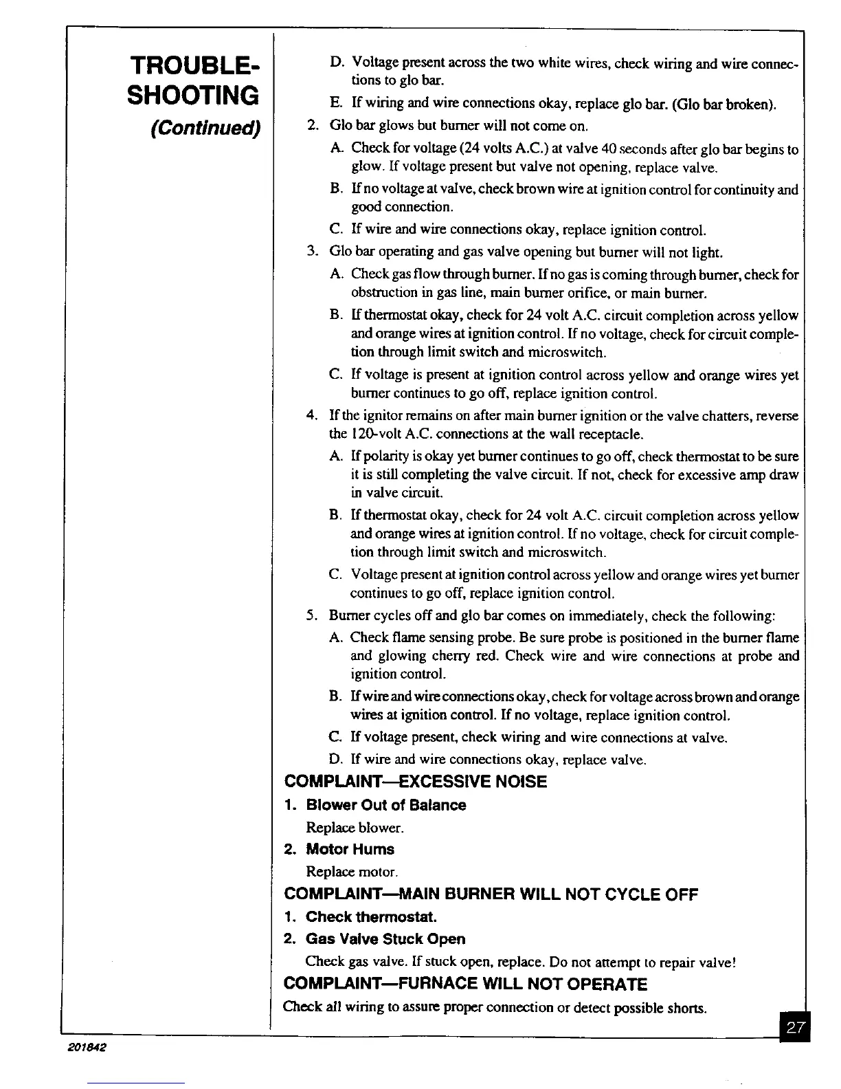 and orange wires at ignition control. If no voltage, check for circuit comple-