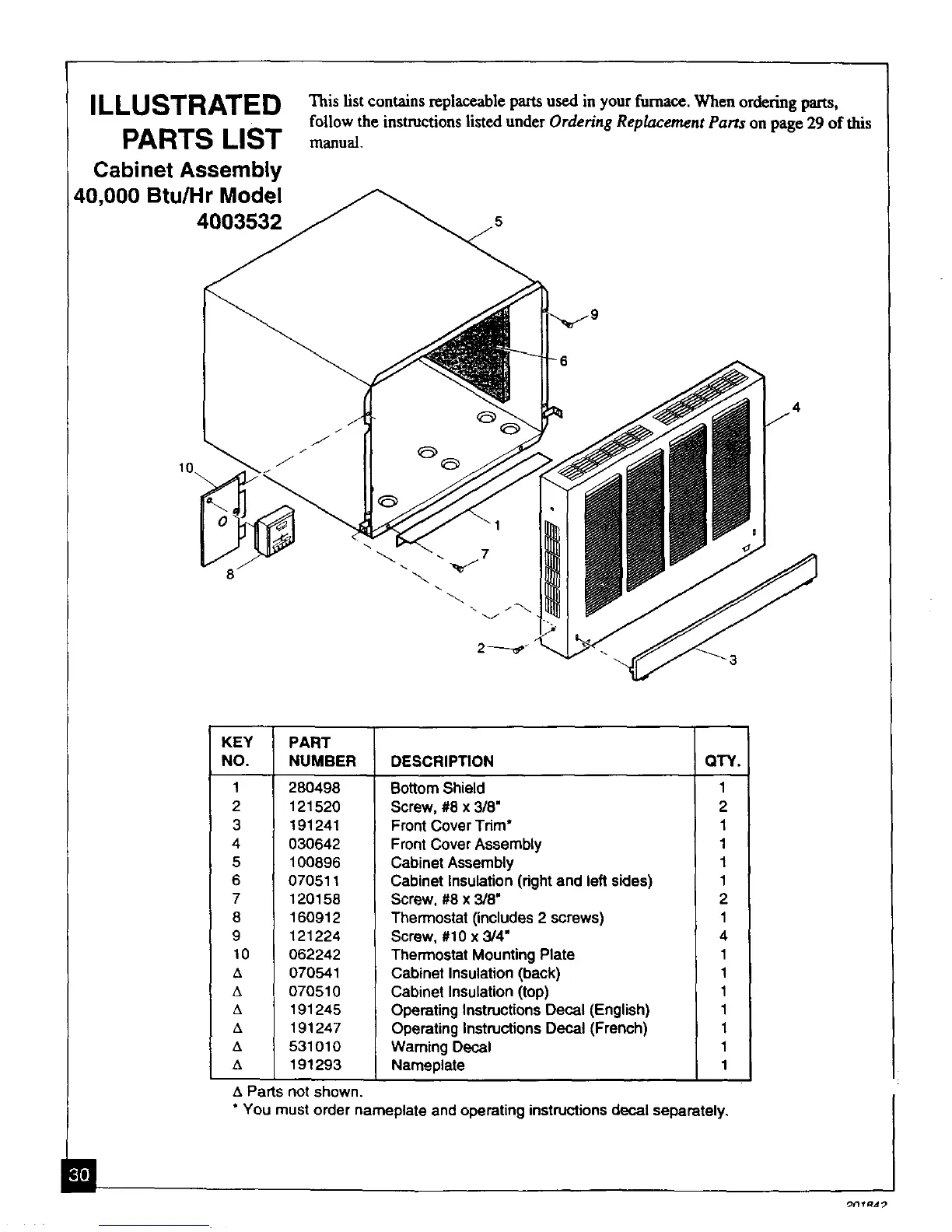 This list contains replaceable parts used in your furnace. When ordering parts,