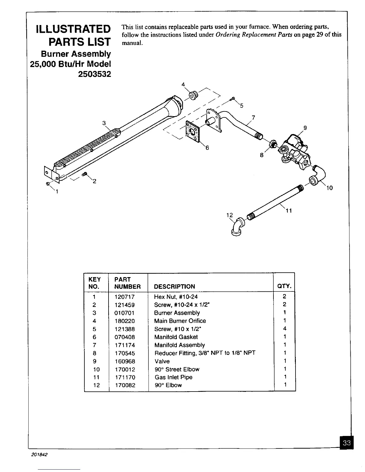 This list contains replaceable parts used in your furnace. When ordering parts,