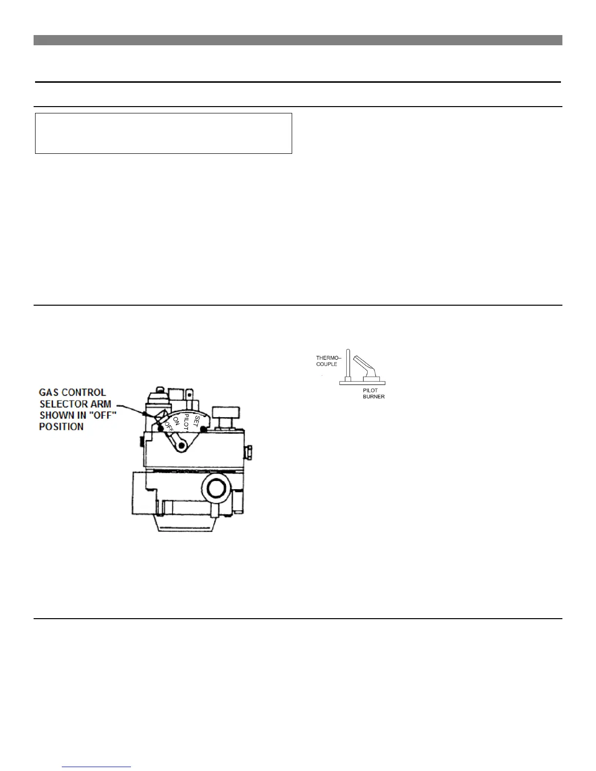 4. From the "ON" position, depress and move selector arm on gas control to the "OFF" position. Do not force the control selector arm.