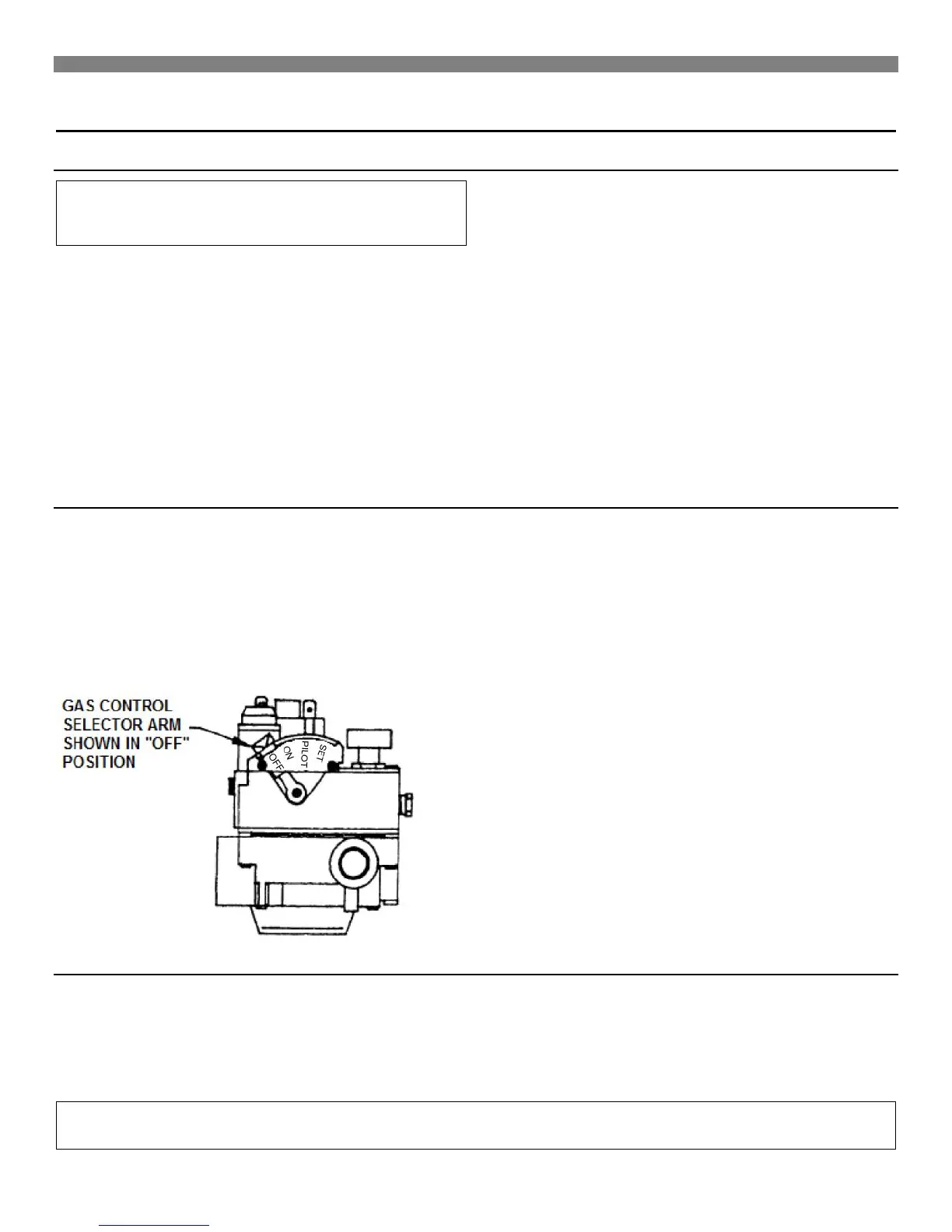 4. From the "ON" position, depress and move the selector arm on gas control to the "OFF" position. Do not force the selector arm.