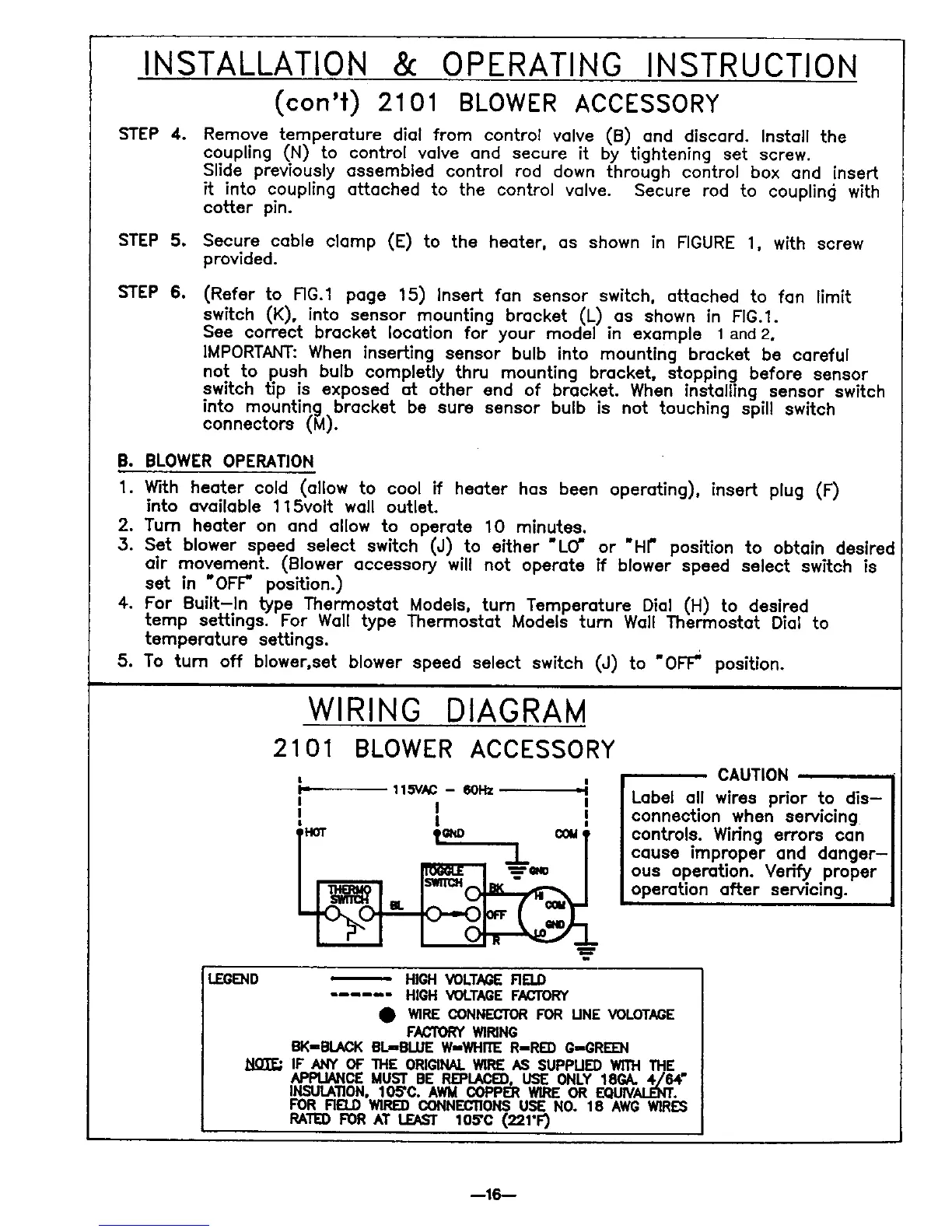 air movement. (Blower accessory will not operate if blower speed select switch is