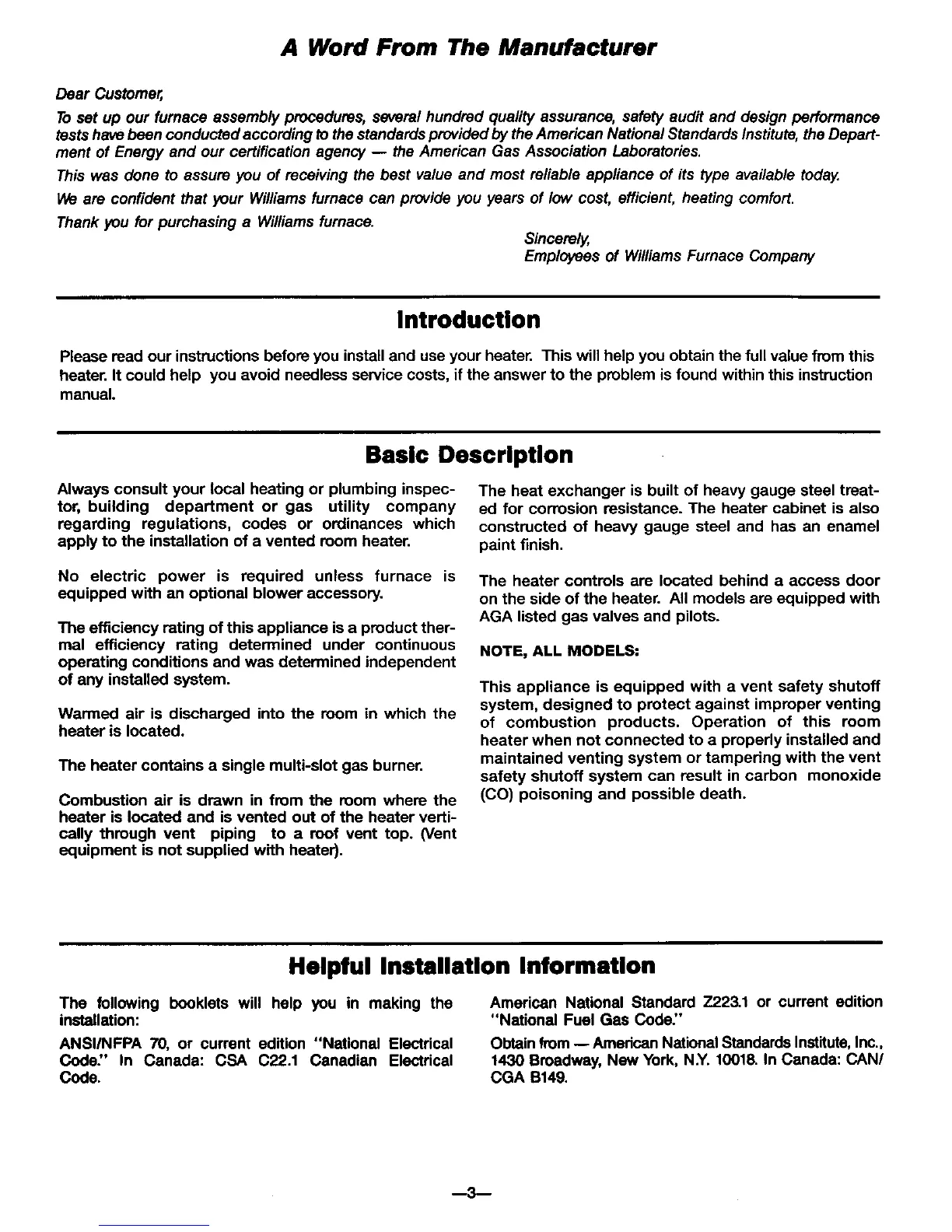 Thank you for purchasing a Williams furnace.