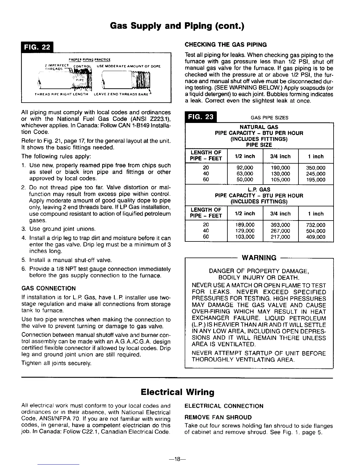 manual gas valve for the furnace. If gas piping is to be