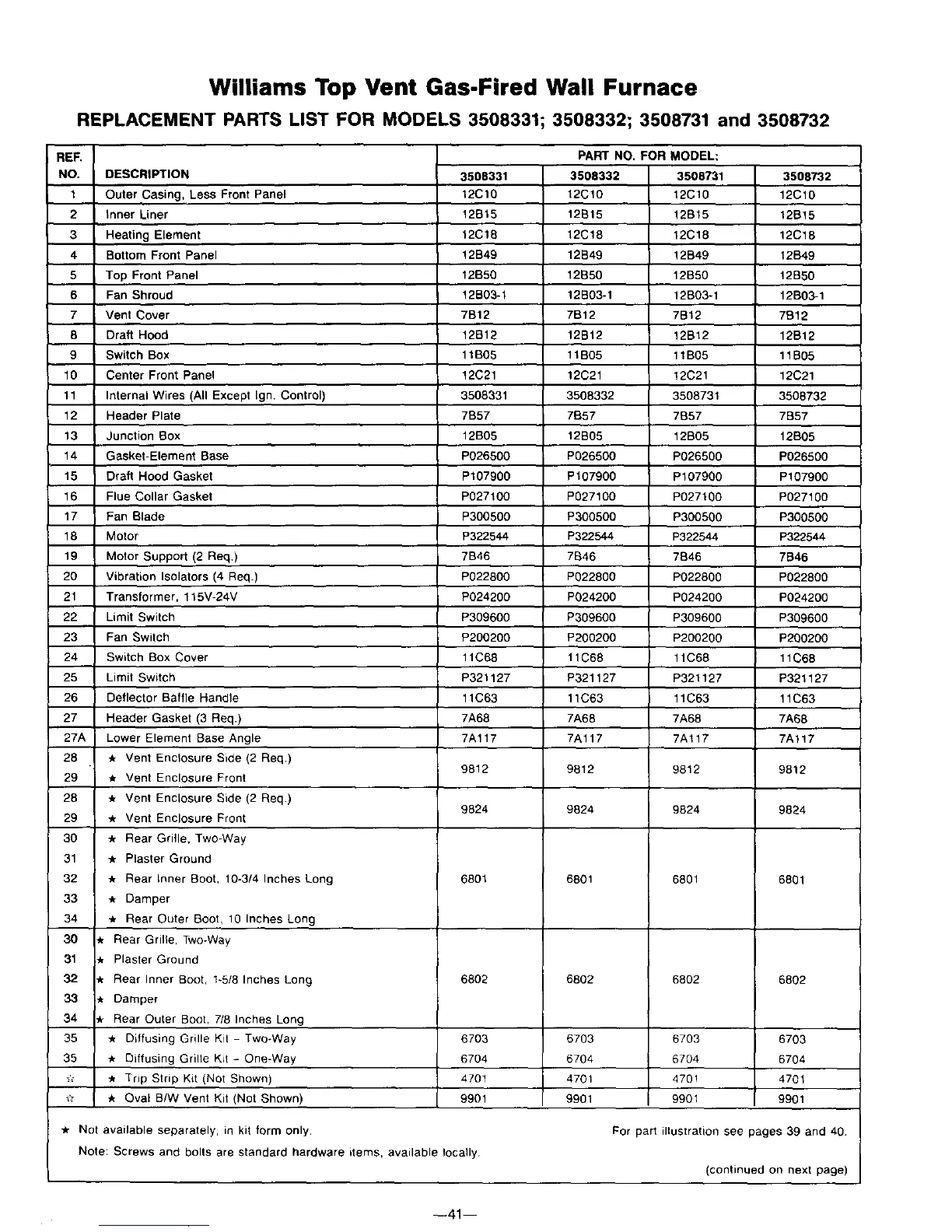 "_ Not available separately, in kit form only. For part illustration see pages 39 and 40