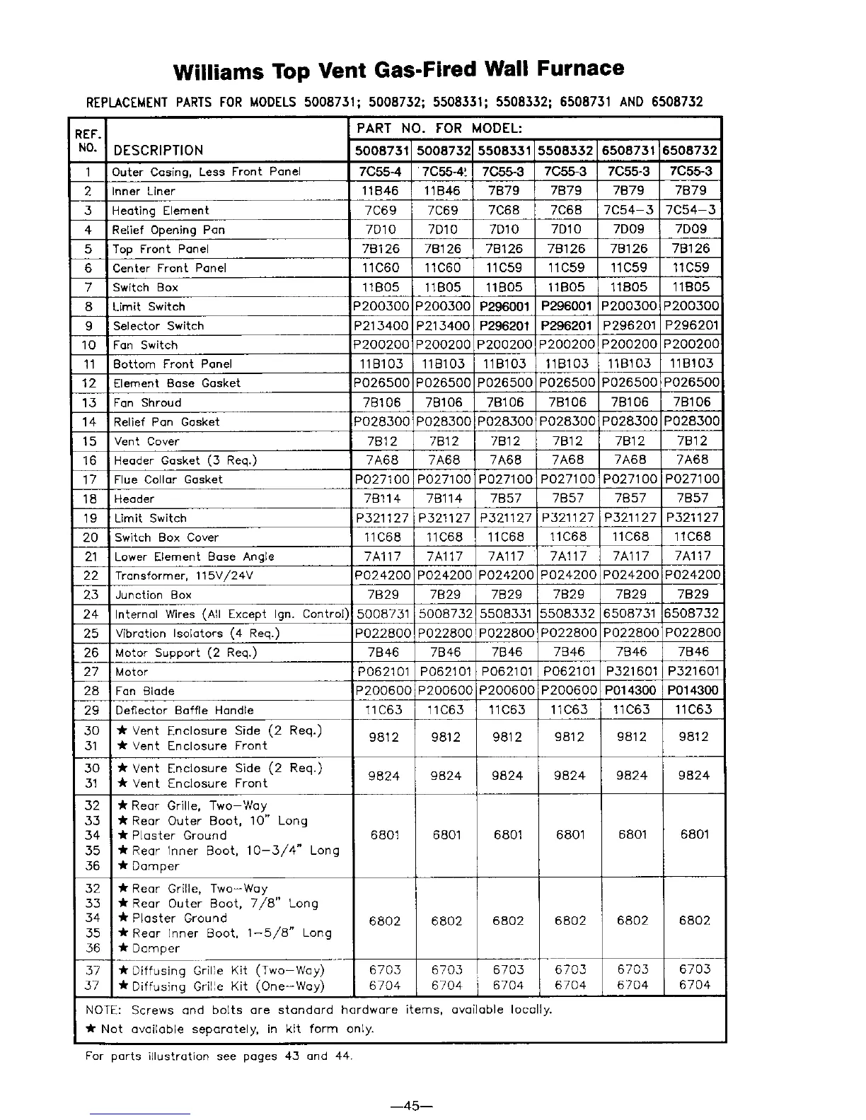 REPLACEMENTPARTSFORMODELS5008731 5008732; 5508331; 5508332; 6508731 AND 6508732