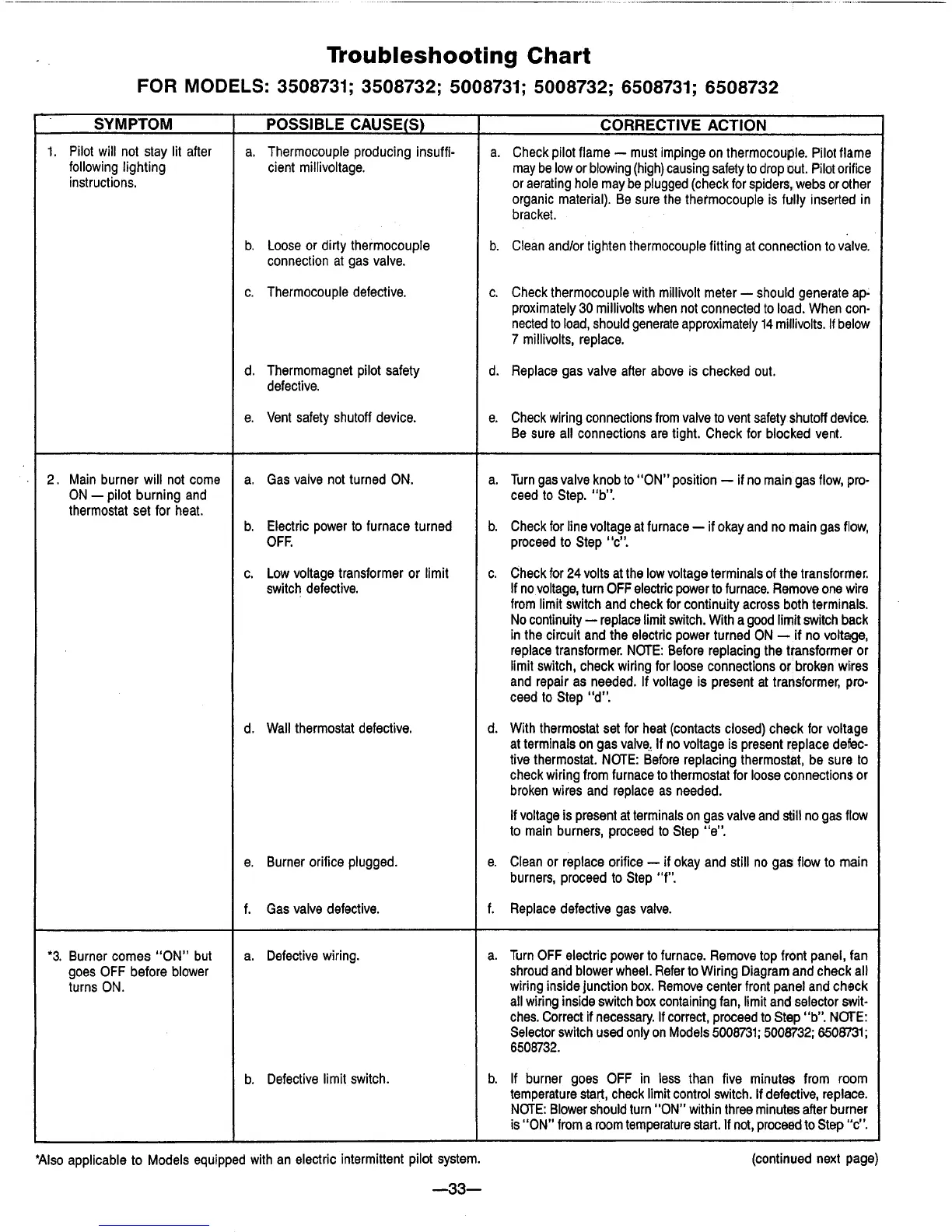 Williams 6508732 - Troubleshooting Chart