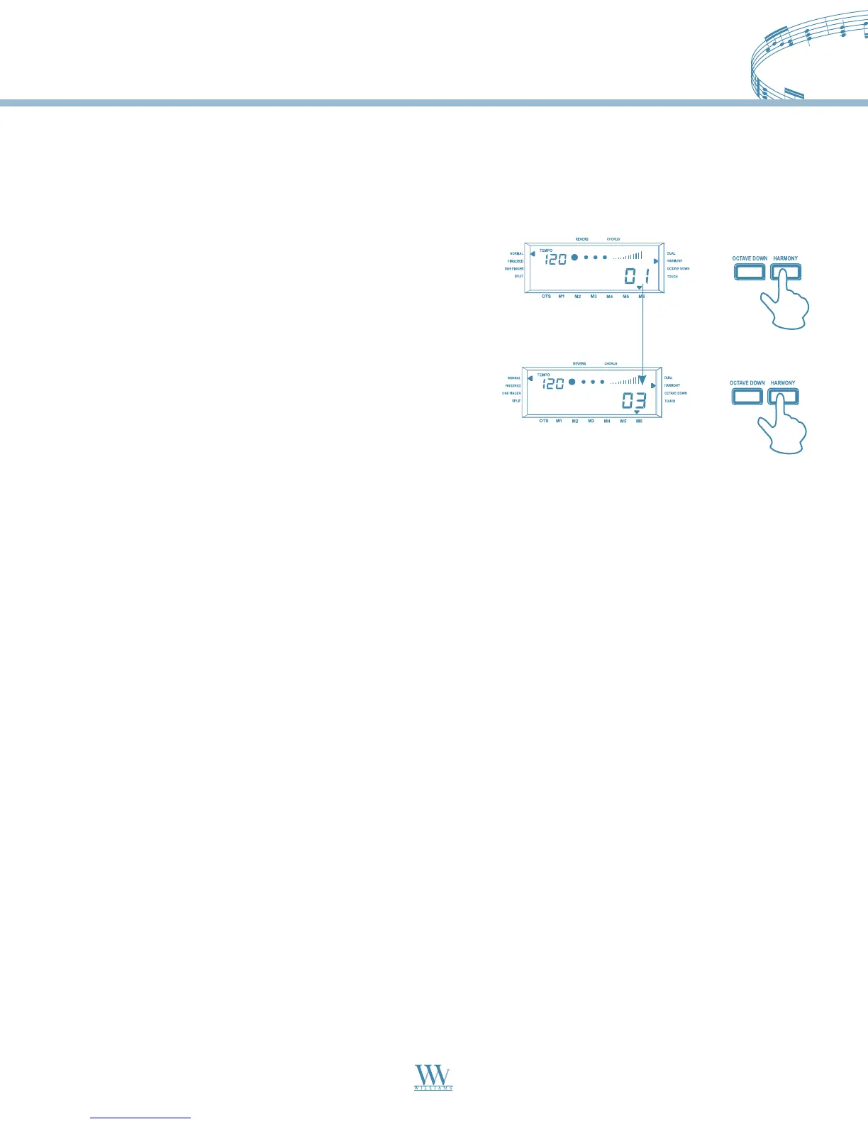 3. When you are in harmony 01 status, press the HARMONY button once and 02 will appear in the display.