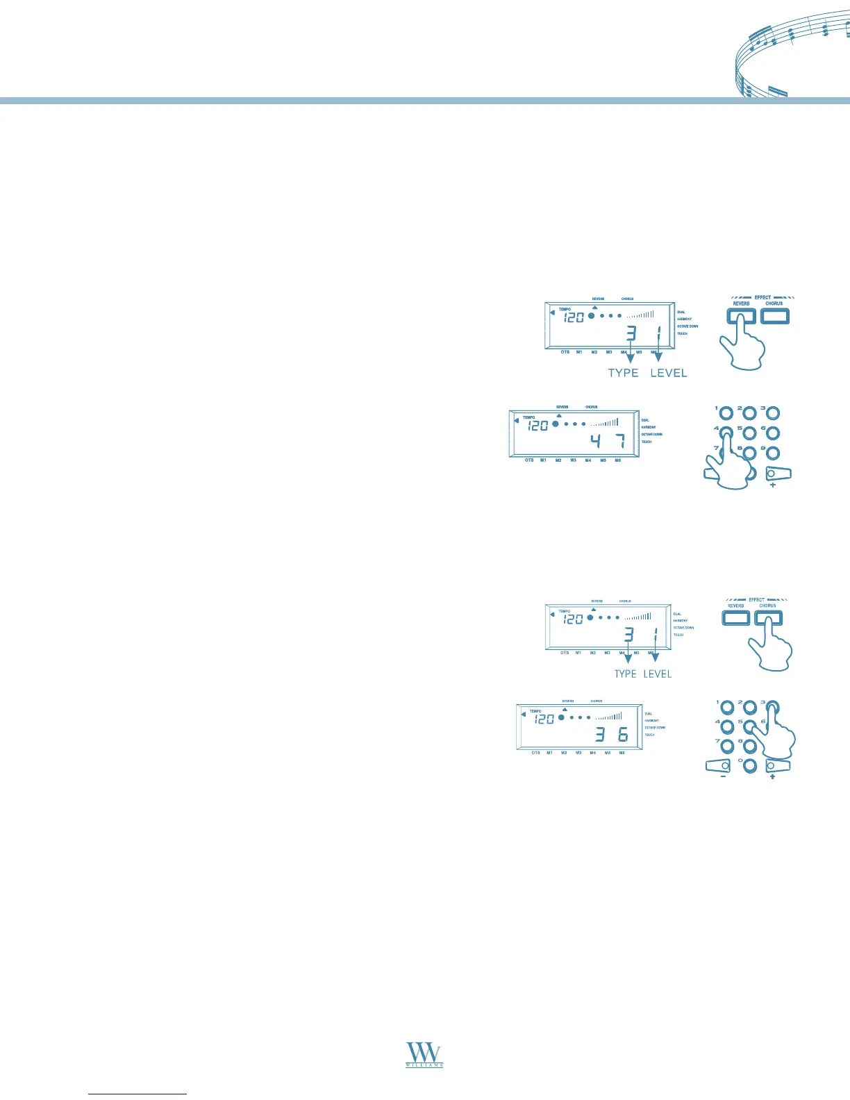 Note: When the Reverb and Chorus levels are set to “0”, the effects are turned off. The default Reverb type and