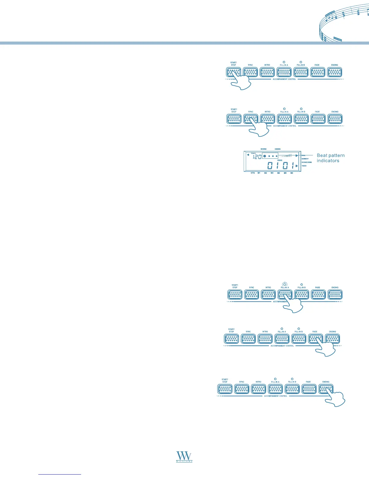 3. To stop the style, press either the START/STOP button or the SYNC button. Before starting the Style, press