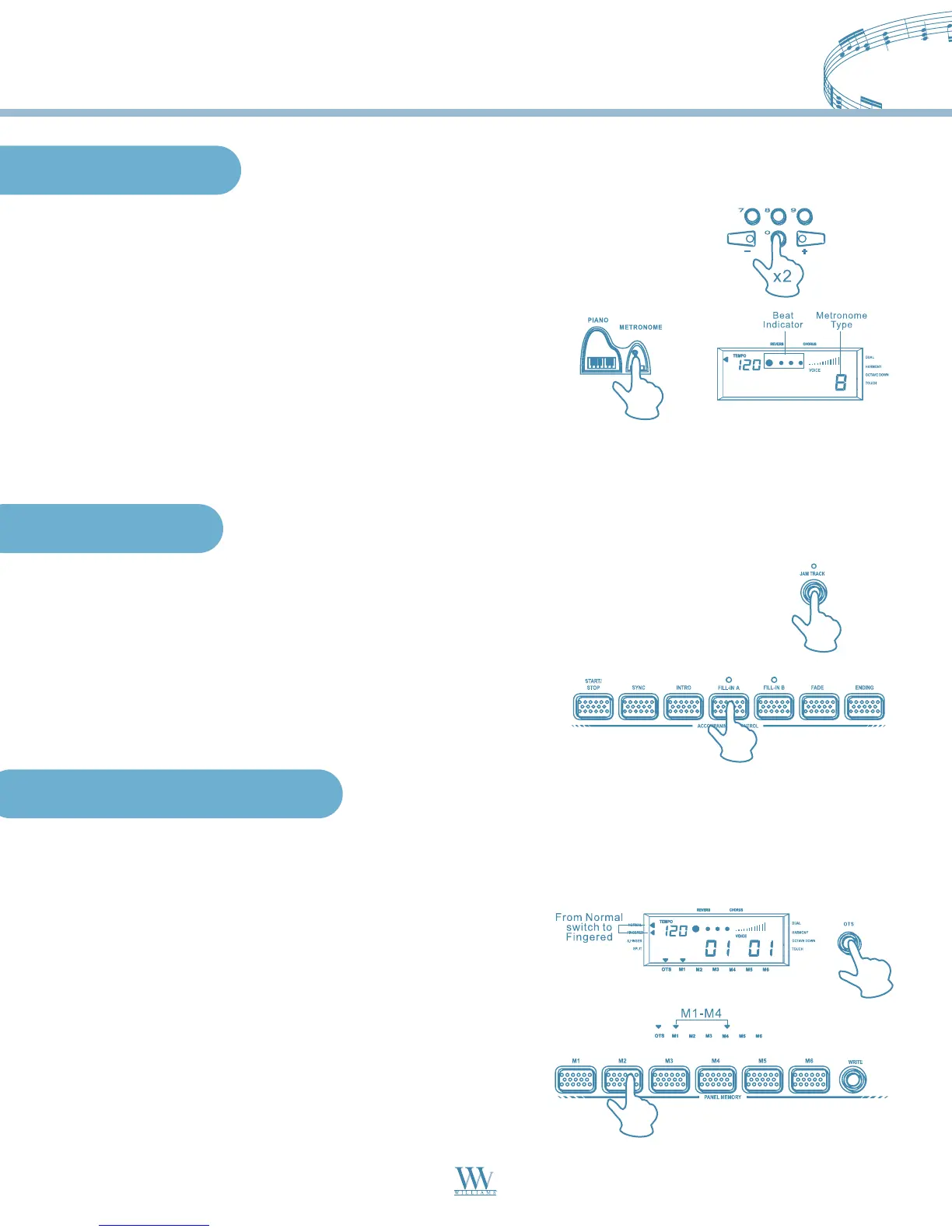 2. In the JAM TRACK accompaniment pattern by pressing the