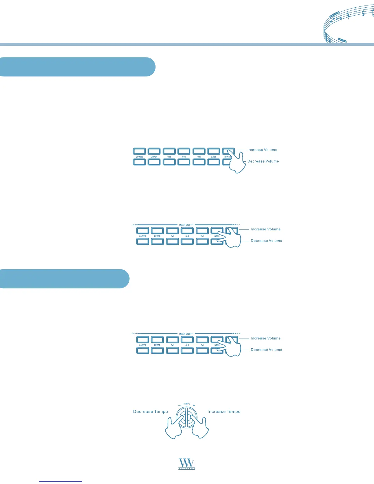 To increase the volume of each section, press and hold the INCREASE VOLUME button on the top row until