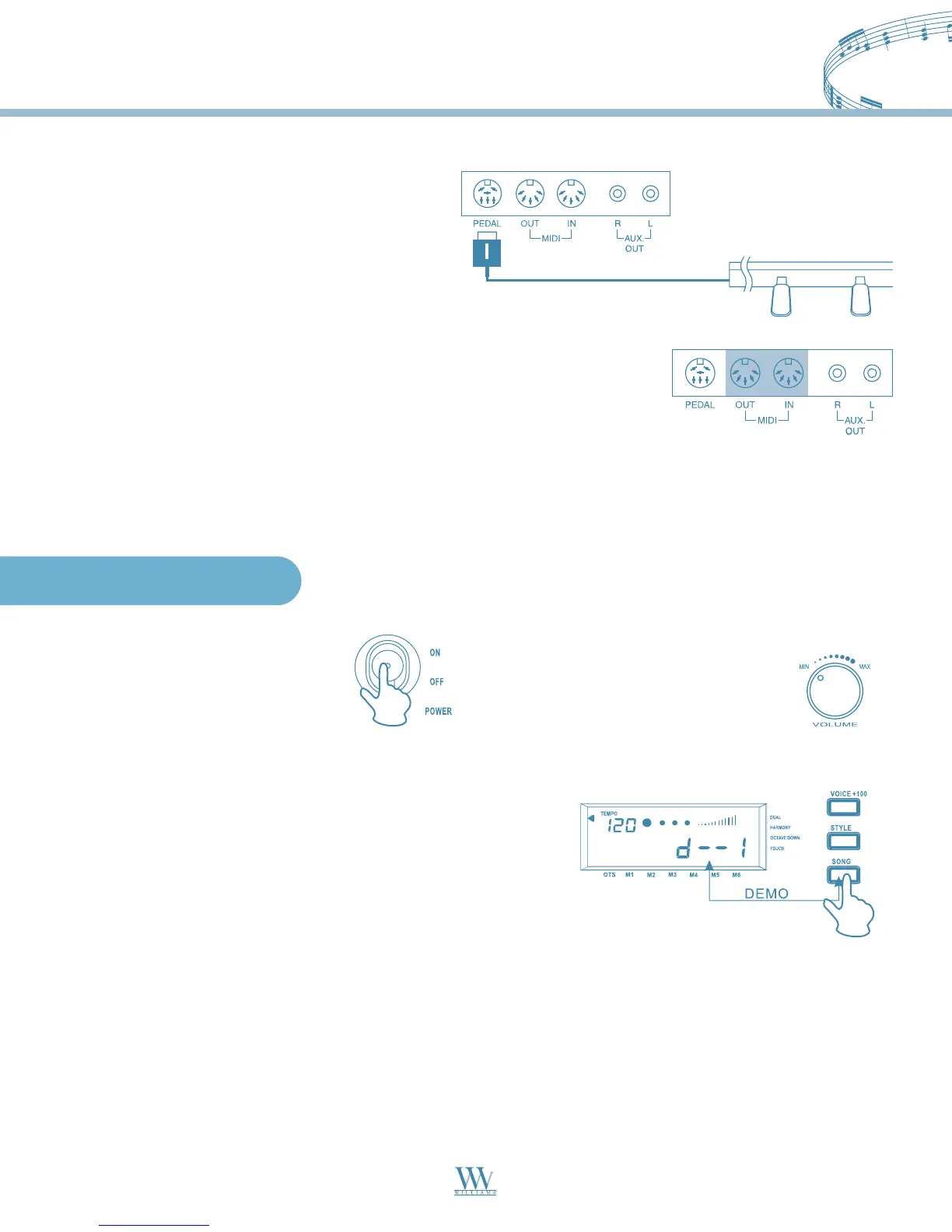 MIDI OUT: Data produced by the Digital Piano is transmitted to other MIDI instruments via MIDI from